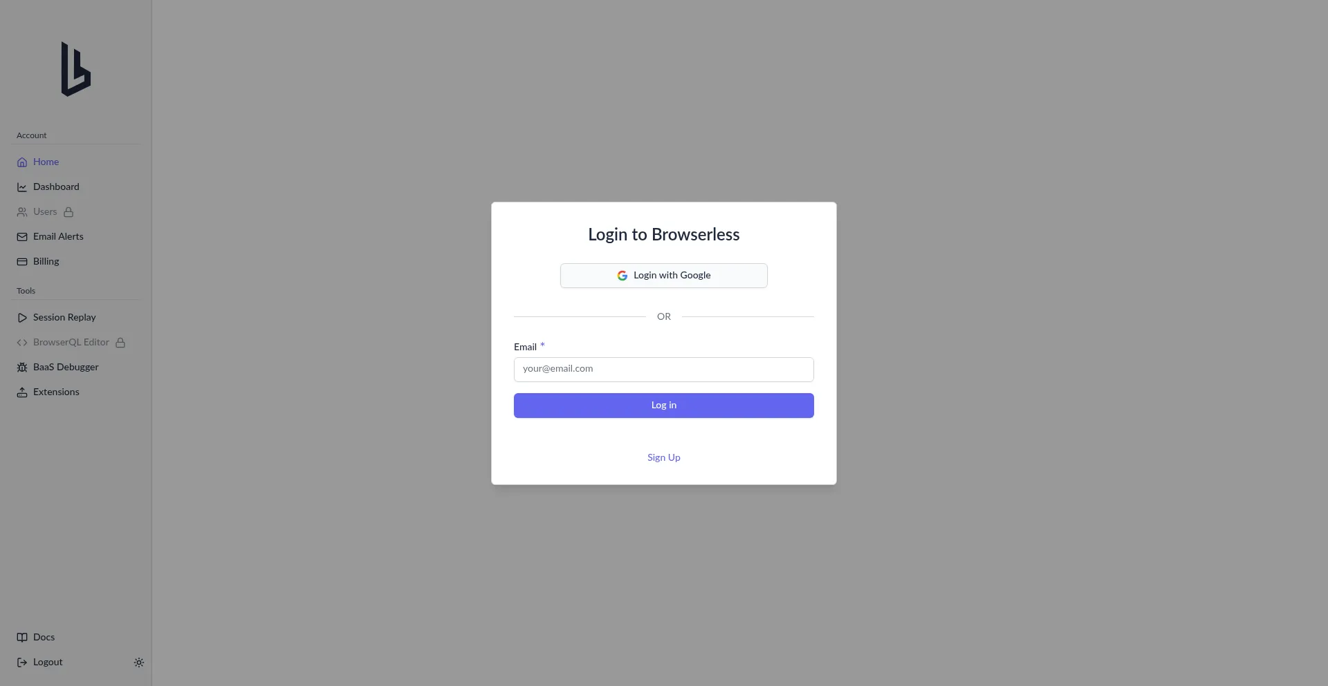 该网站实现数据收集表单,请求个人信息,包括姓名、电子邮件地址、电话号码或其他敏感详细信息。用户应验证 account.browserless.io 的合法性并在提交个人数据前查看隐私政策。