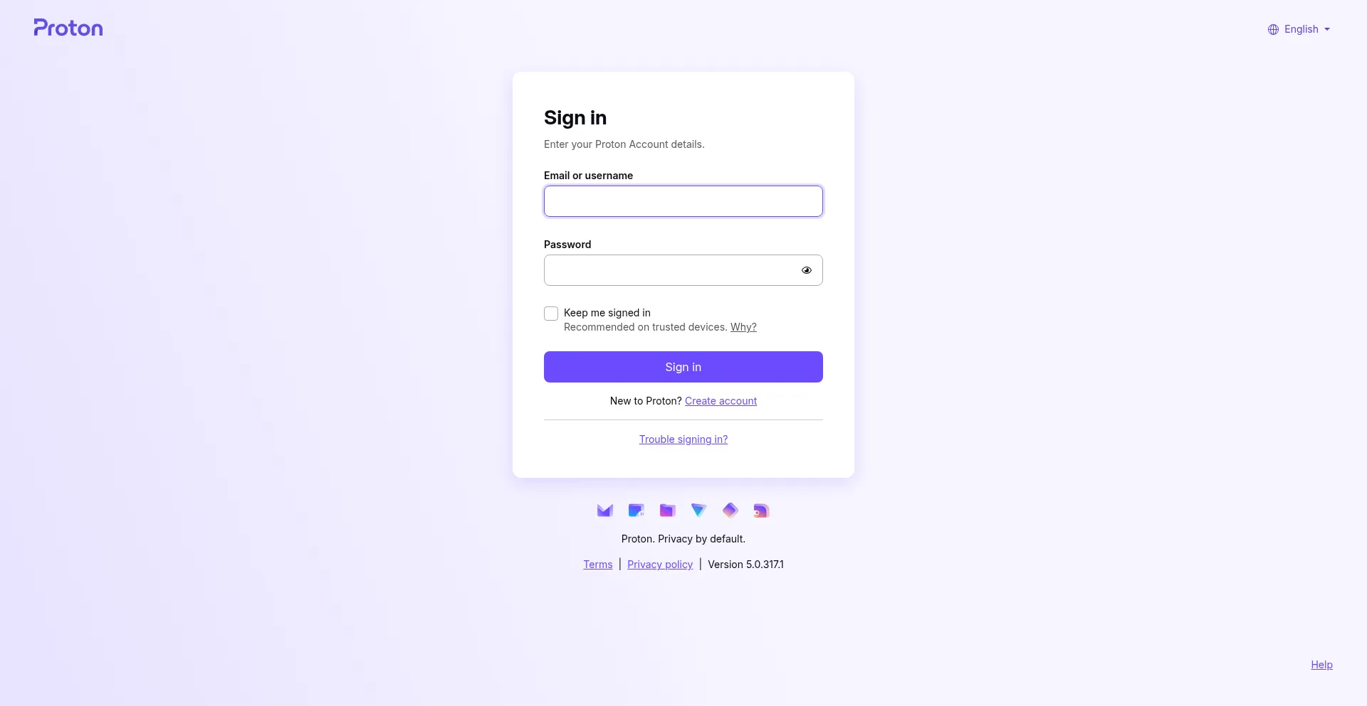 Sign in to your Proton Account to access all encrypted Proton services such as Proton Mail, Drive, Calendar, and more. Don't have an account? Create one for FREE.