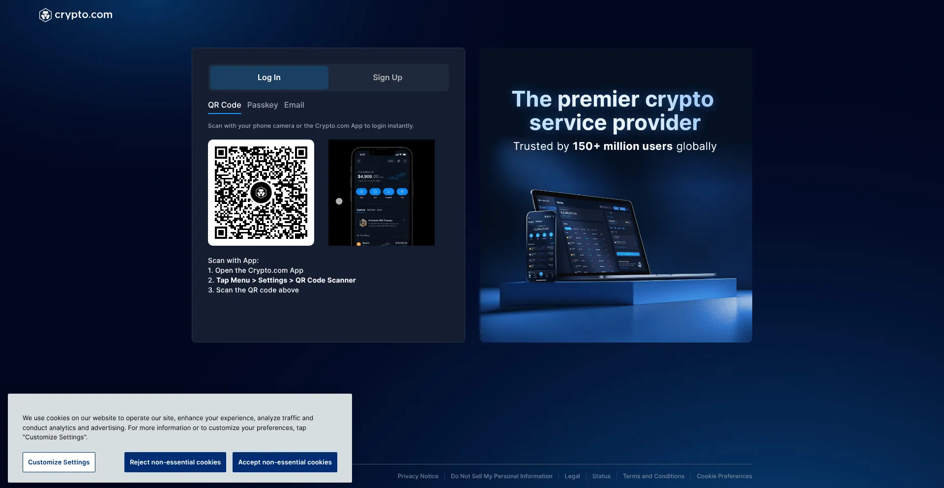 该网站实现符合GDPR或CCPA等隐私法规的cookie同意机制。这表明 accounts.crypto.com 遵守数据保护标准并为用户提供对个人数据收集实践的控制。