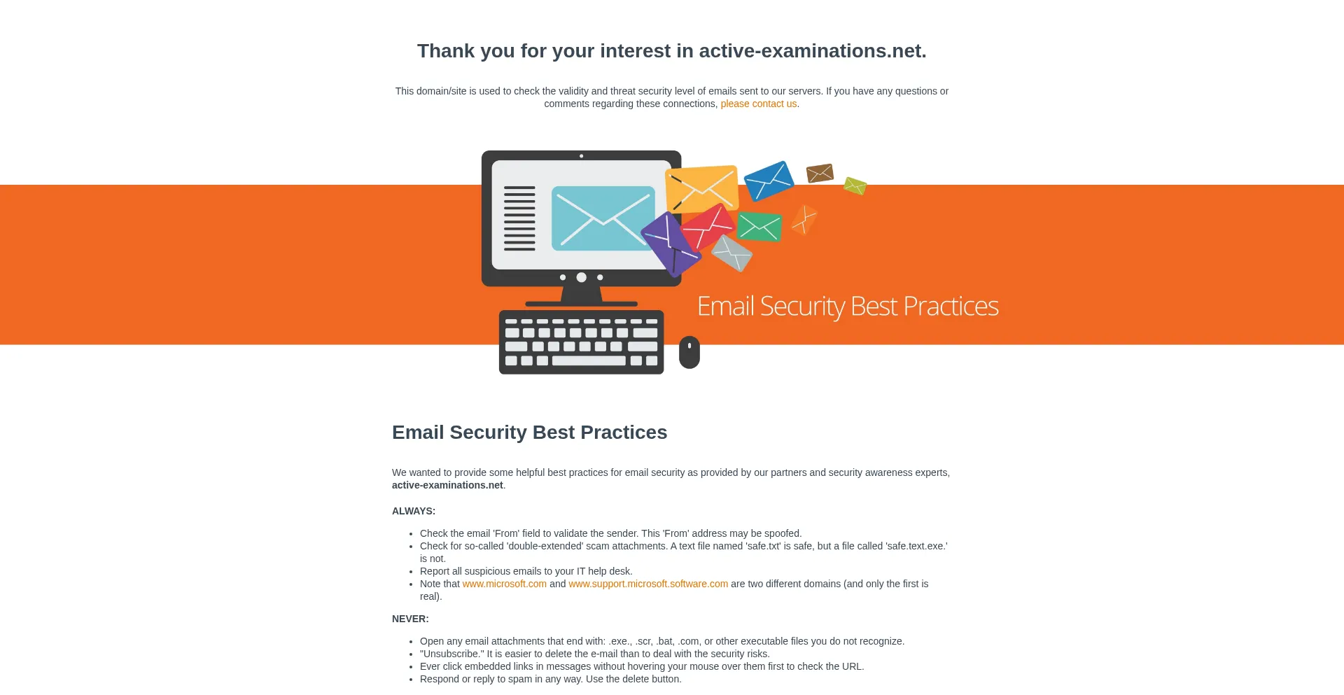 This domain/site is used to check the validity and threat security level of emails sent to our servers.