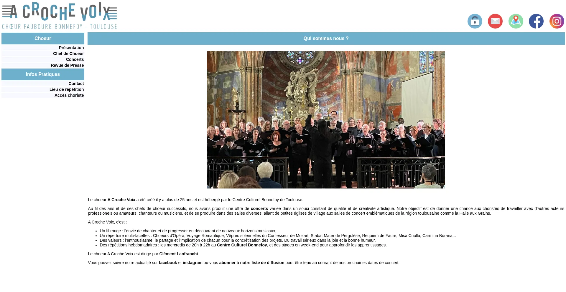 Le choeur A Croche Voix a été créé il y a plus de 25 ans et est hébergé par le Centre Culturel Bonnefoy de Toulouse.