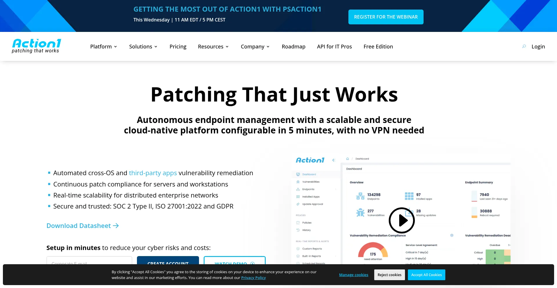 该网站实现符合GDPR或CCPA等隐私法规的cookie同意机制。这表明 action1.com 遵守数据保护标准并为用户提供对个人数据收集实践的控制。