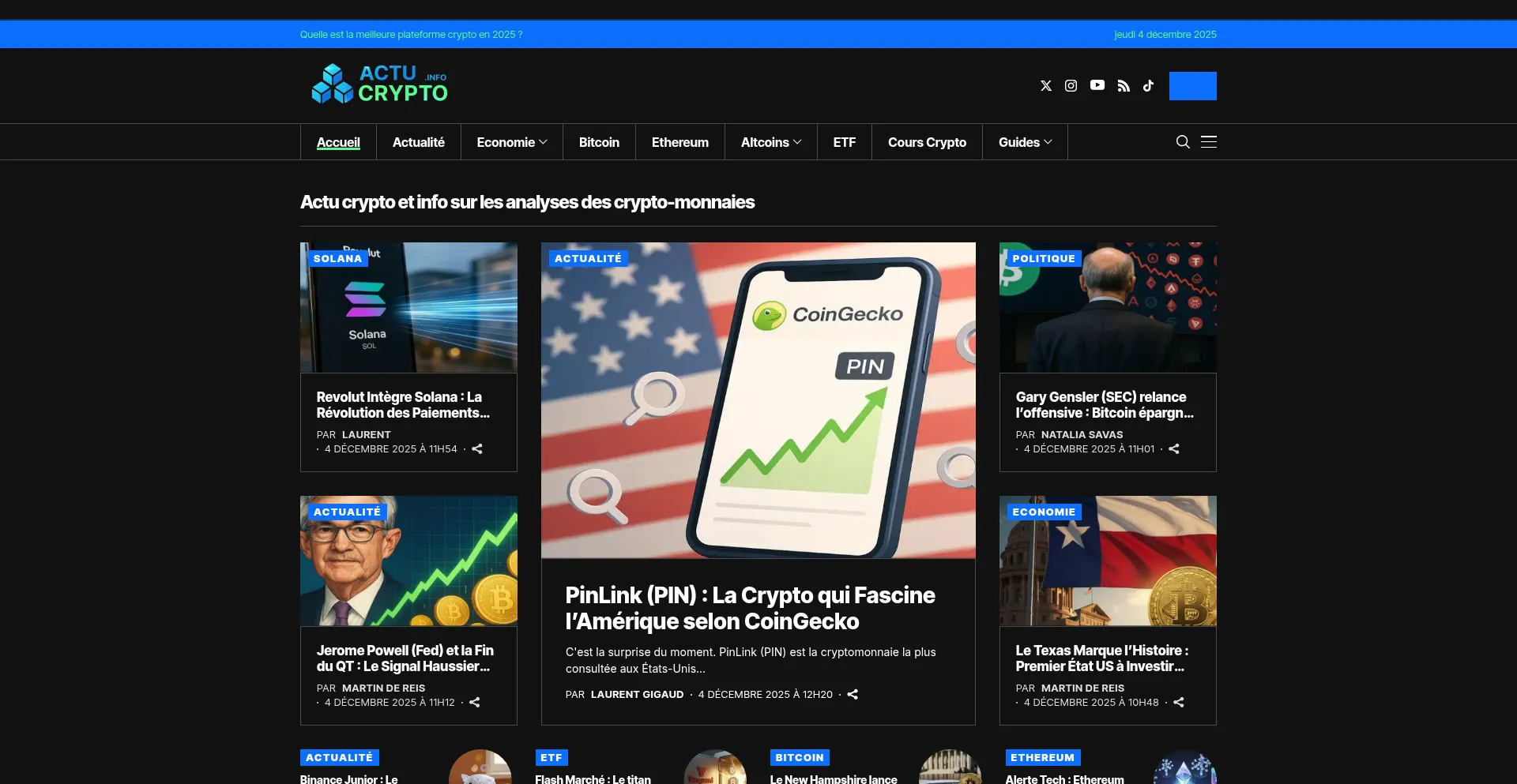 Actu Crypto .info : Actualité sur les crypto-monnaies, Bitcoin, Altcoins, Web3