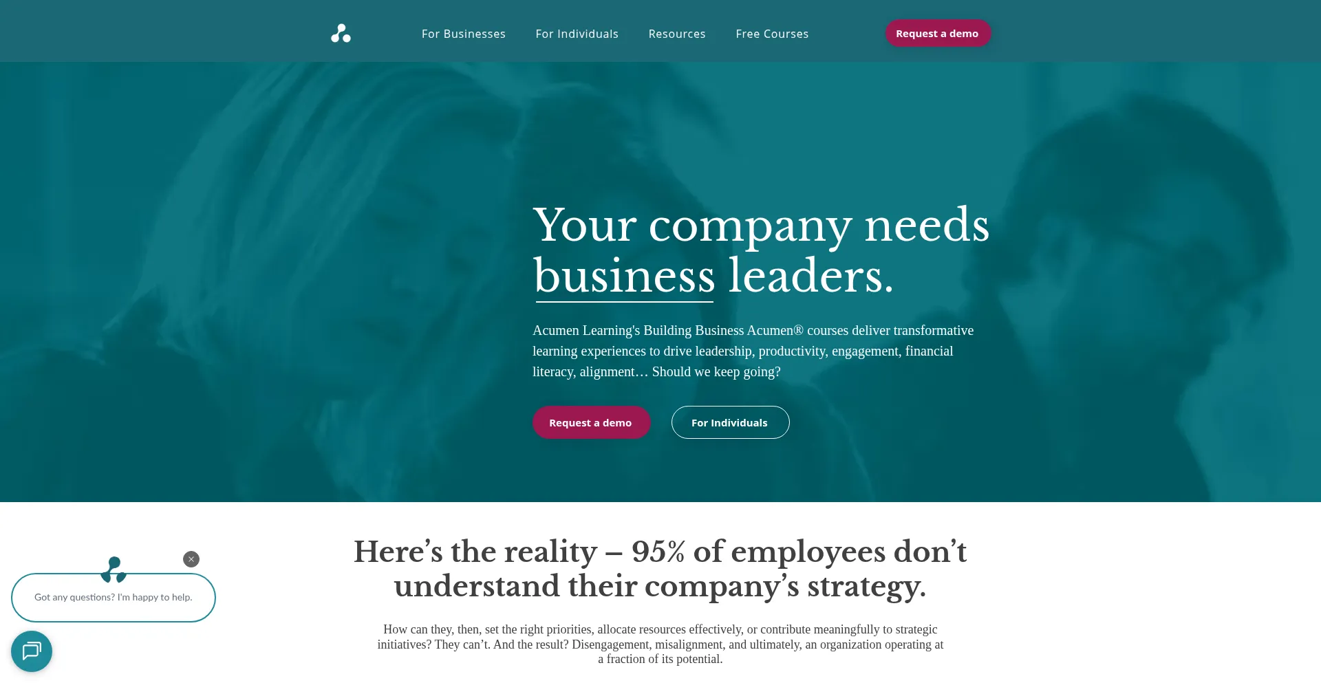 Acumen Learning is dedicated to business acumen training that changes the financial and strategic knowledge of companies based off their bestselling book "Seeing the Big Picture."