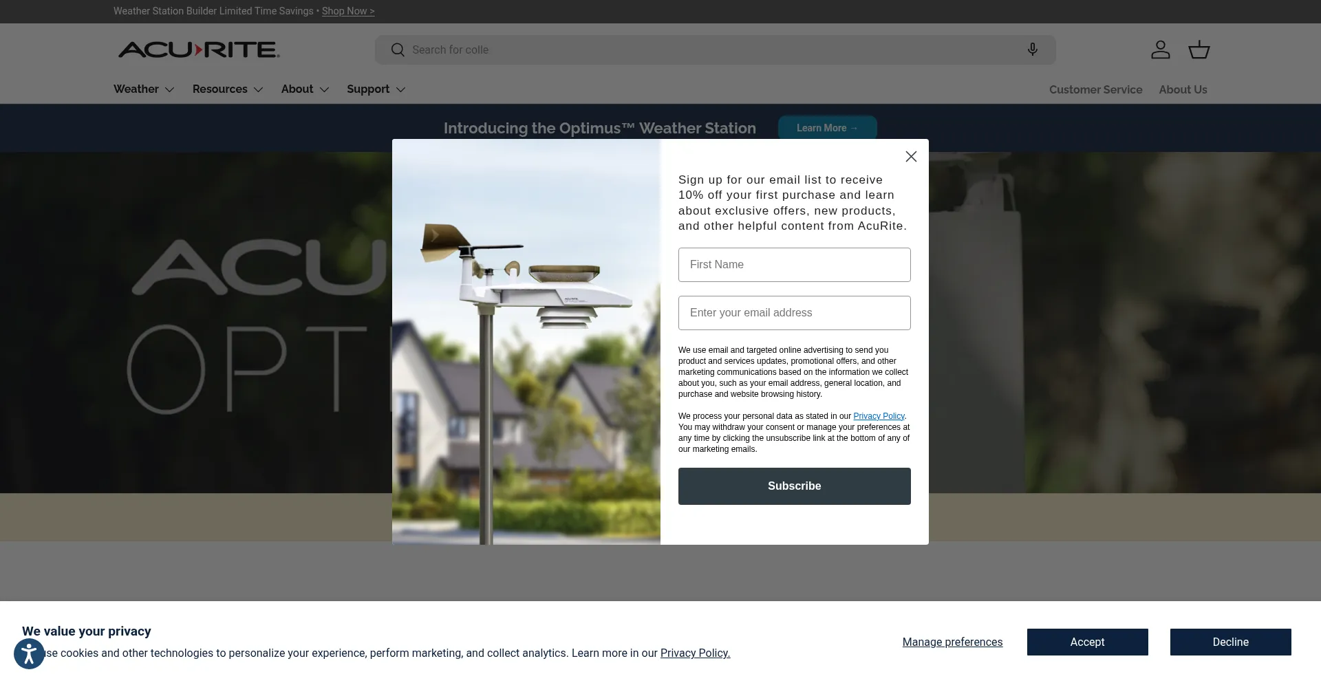 该网站实现数据收集表单,请求个人信息,包括姓名、电子邮件地址、电话号码或其他敏感详细信息。用户应验证 acurite.com 的合法性并在提交个人数据前查看隐私政策。