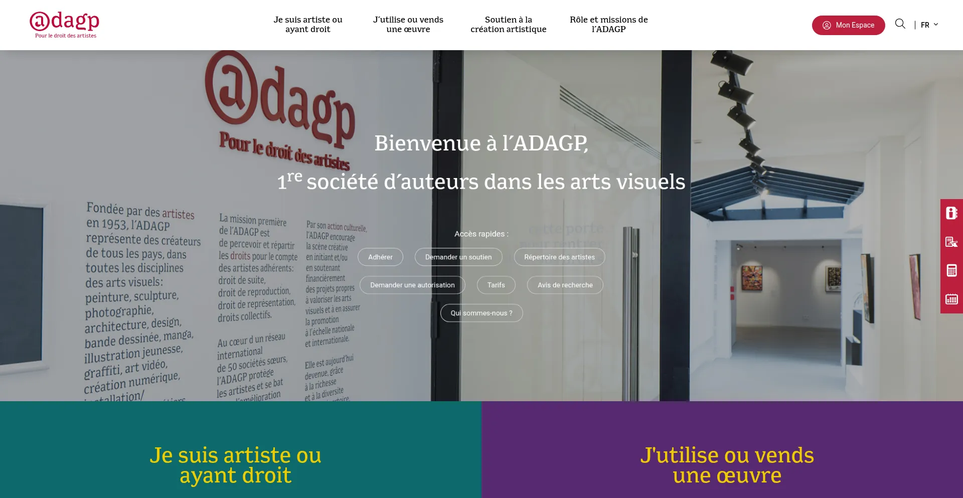 Créée en 1953, l’ADAGP est la société française de perception et de répartition des droits d’auteur dans le domaine des arts graphiques et plastiques.