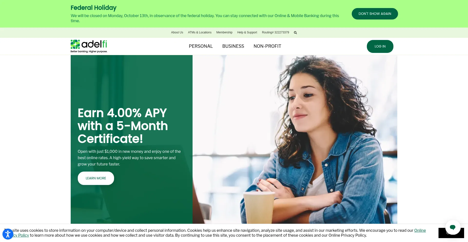 该网站实现符合GDPR或CCPA等隐私法规的cookie同意机制。这表明 adelfibanking.com 遵守数据保护标准并为用户提供对个人数据收集实践的控制。