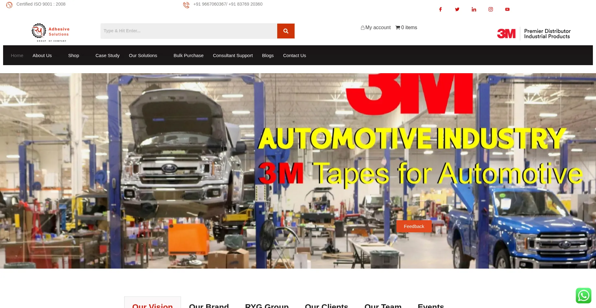 Our Vision Our Brand RYG Group Our Clients Our Team Events Our Vision Our Vision “Adhesive Solutions” (ISO 9001- 2008 Certified Company) are Authorized Wholesale Distributor...