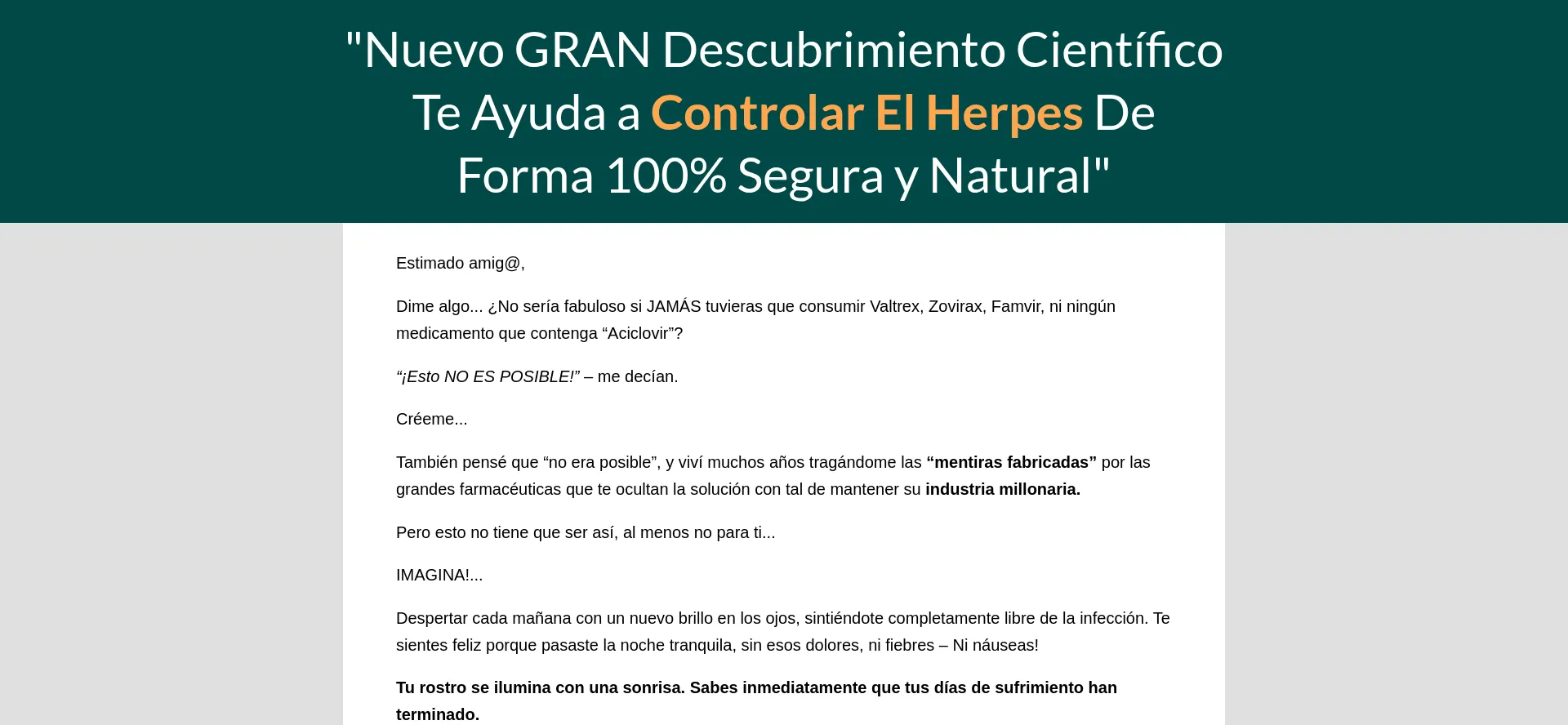 "Nuevo GRAN Descubrimiento Científico Te Ayuda a Controlar El Herpes De Forma 100% Segura y Natural"