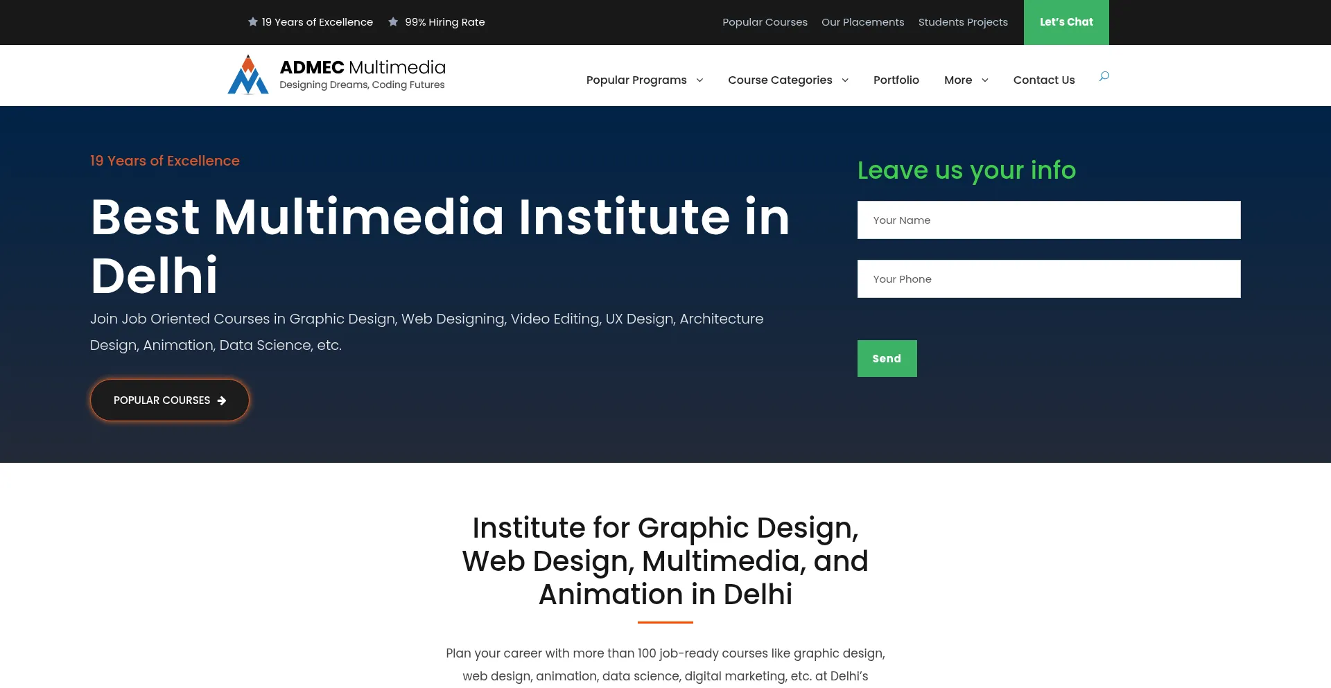 ADMEC Multimedia is a Graphic Design Web Design Animation Training Institute in Rohini, Delhi. It offers comprehensive training with job.