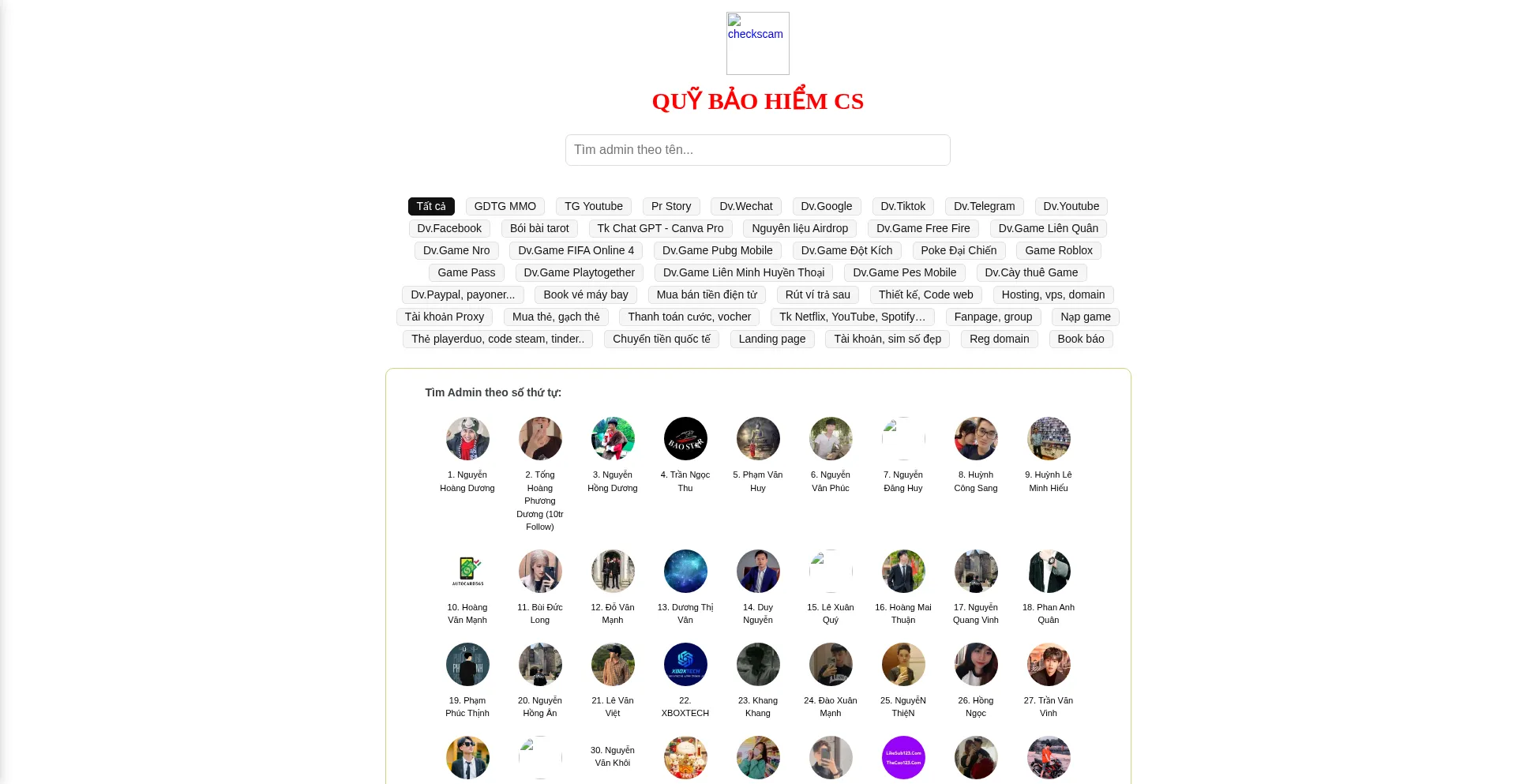 [ QUỸ BH CS ] DS Admin quỹ bảo hiểm Checkscam
