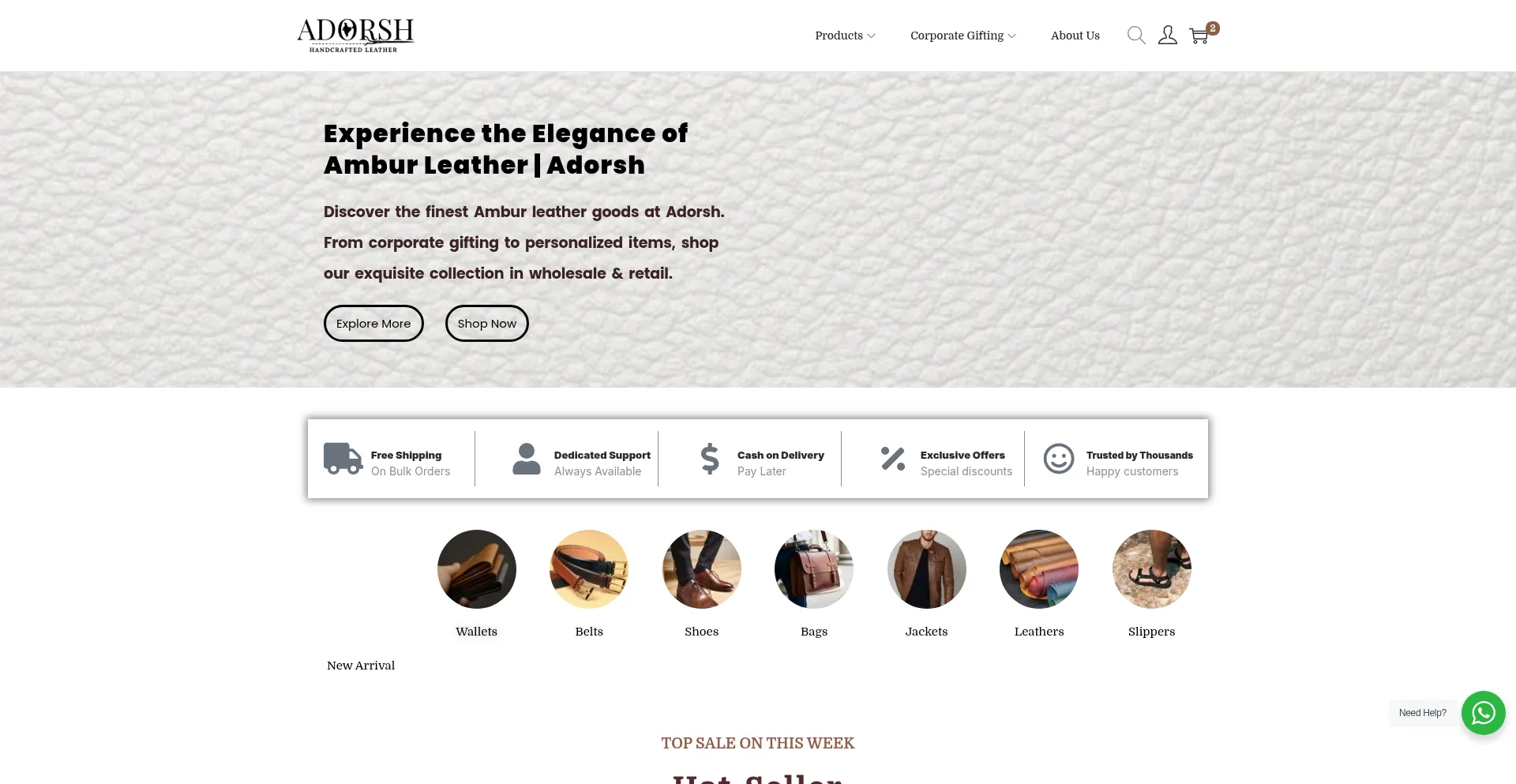 Ambur leather products at Adorsh. Explore our handcrafted leather bags, wallets, footwear, and accessories. Personalized leather products.