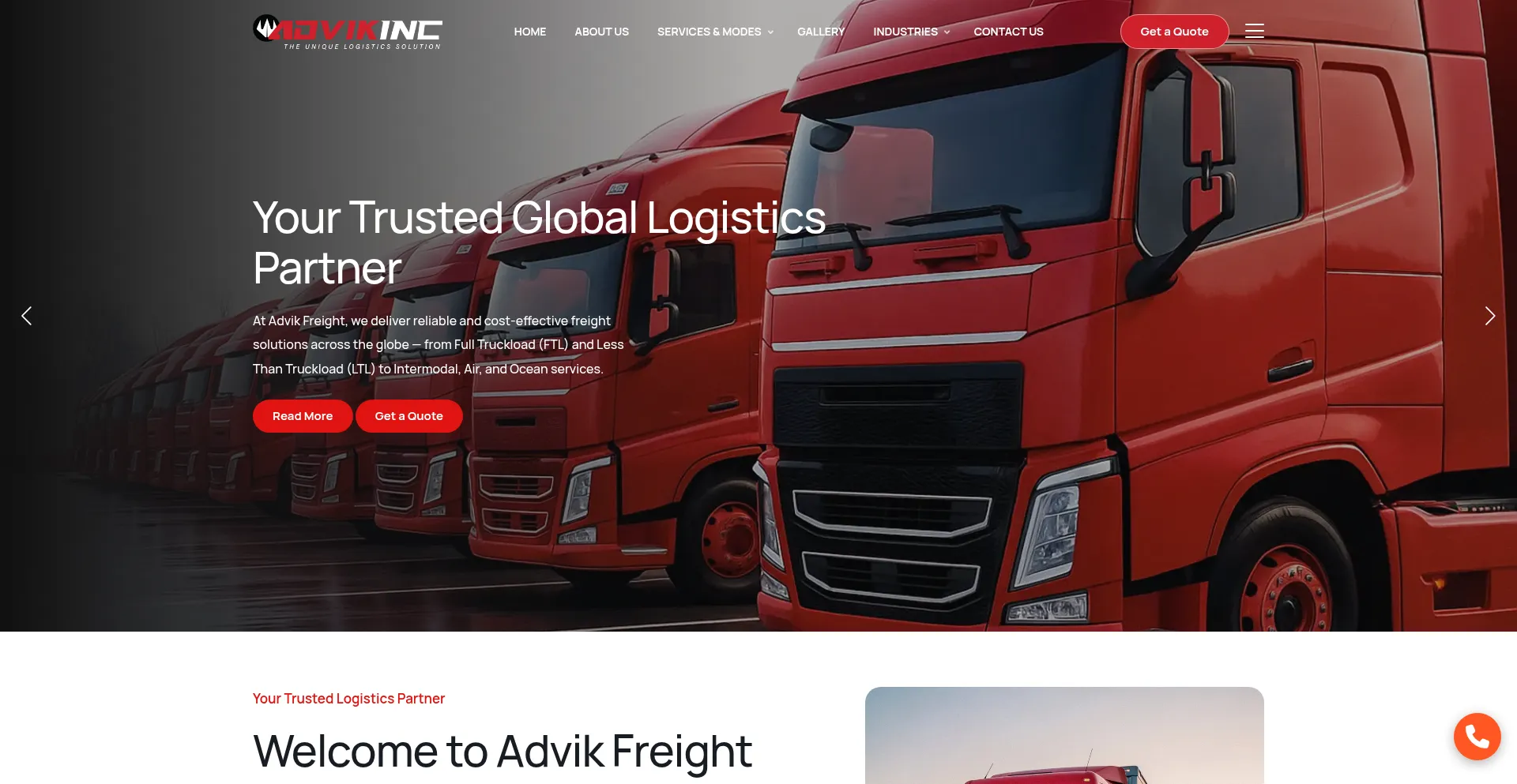 advikfreight.com 使用 Bootstrap,这是一个广泛采用的开源响应式网页开发框架。Bootstrap 通过标准化组件和样式实现移动友好界面的高效创建。