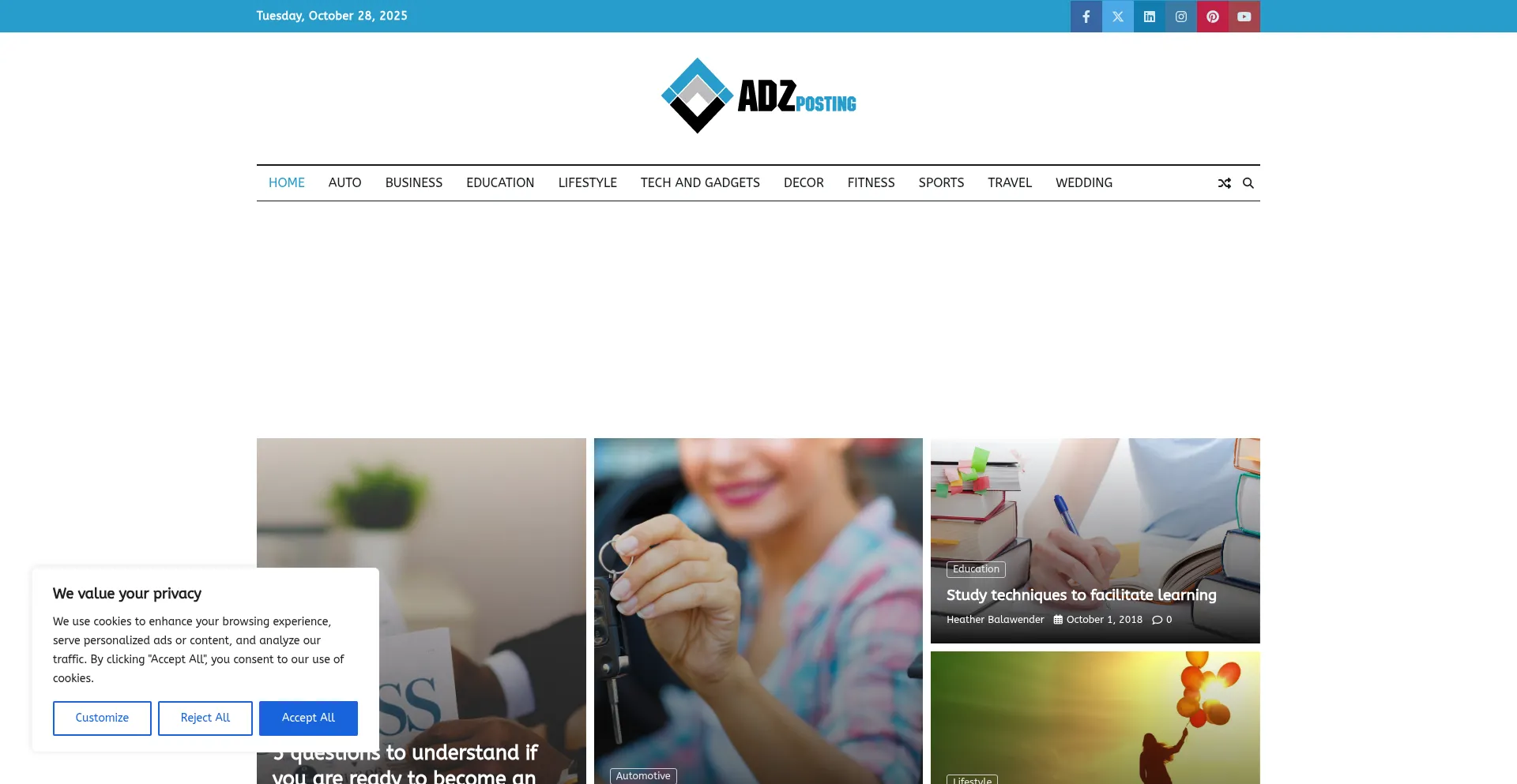 该网站实现符合GDPR或CCPA等隐私法规的cookie同意机制。这表明 adzposting.com 遵守数据保护标准并为用户提供对个人数据收集实践的控制。