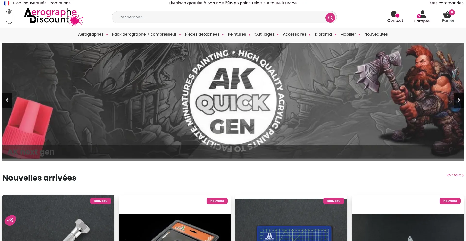 Spécialiste des Aérographes depuis 15ans, +8500refs de peintures, compresseur aérographe, pochoirs à peintures et bien plus! Harder & Steenbeck, Tamiya, Badger, Paasche, Ha...