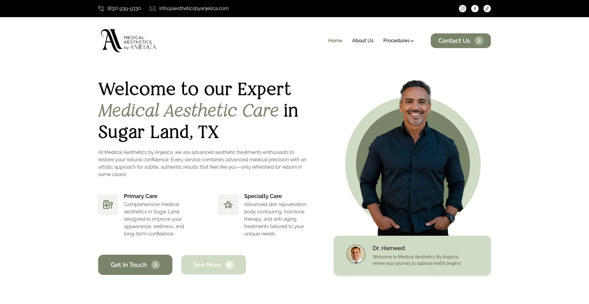 网站上存在社交媒体链接表明 aestheticsbyanjelica.com 在社交媒体上维护官方账户,这是可信度和参与度的积极信号。