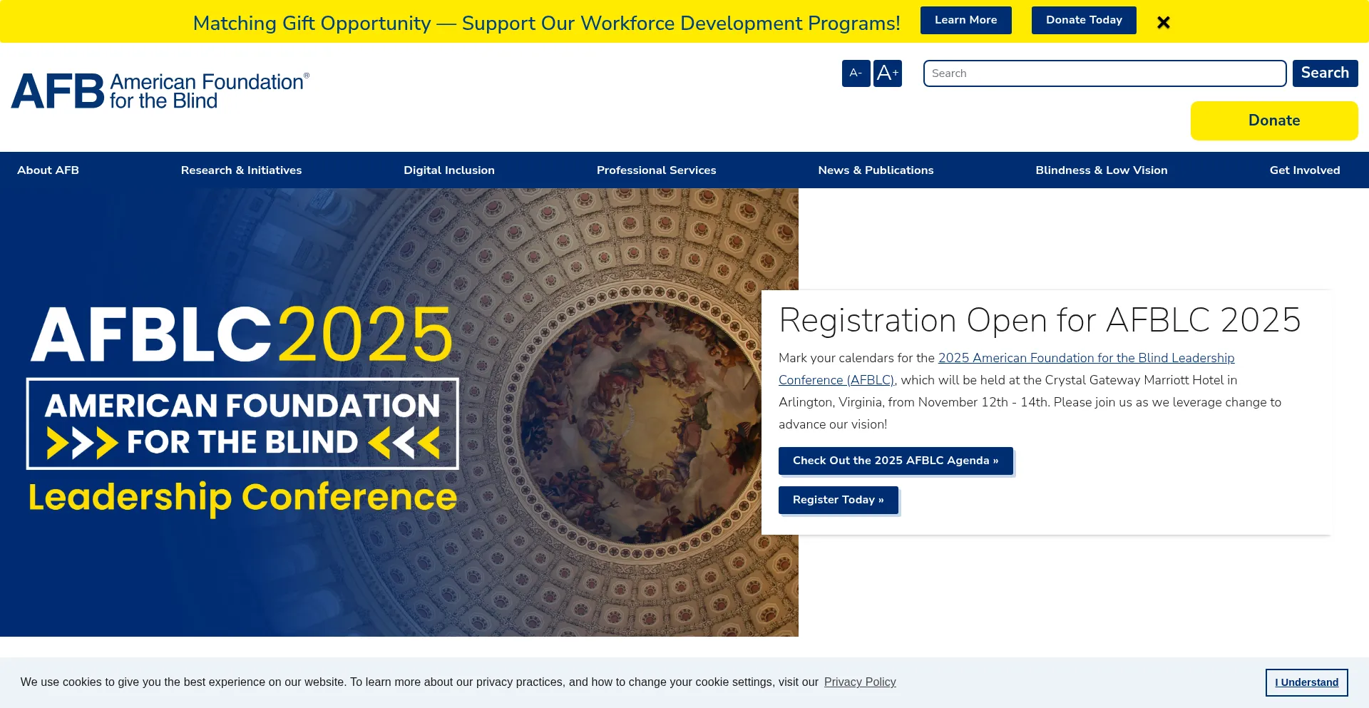 Since 1921, The American Foundation for the Blind (AFB) has been a leader in expanding possibilities for the millions of Americans living with vision loss.
