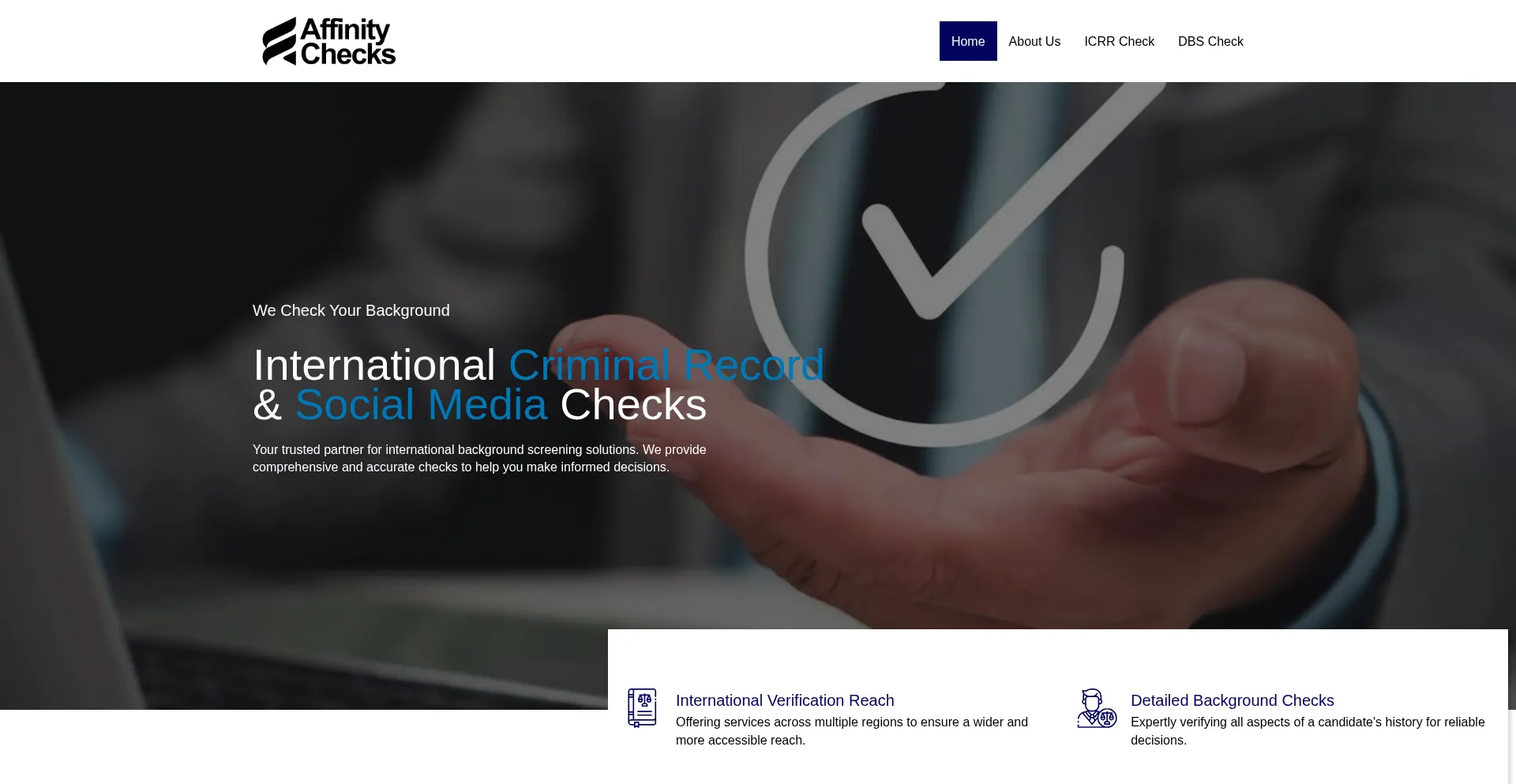 该网站实现数据收集表单,请求个人信息,包括姓名、电子邮件地址、电话号码或其他敏感详细信息。用户应验证 affinitychecks.com 的合法性并在提交个人数据前查看隐私政策。