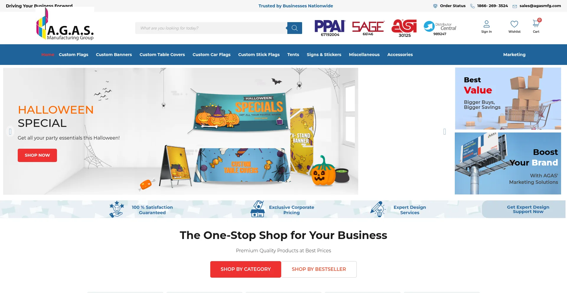 AGAS Manufacturing Inc. offers high-quality custom promotional products online including flags, banners, tents, and trade show displays. Fast delivery across the USA.