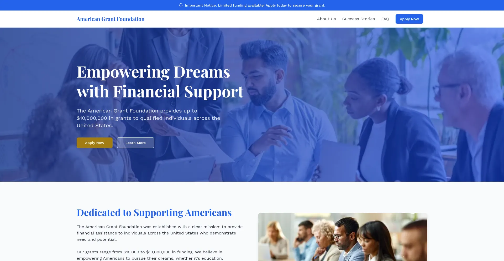 The American Grant Foundation provides financial assistance to qualified individuals across the United States with grants up to $10,000,000.