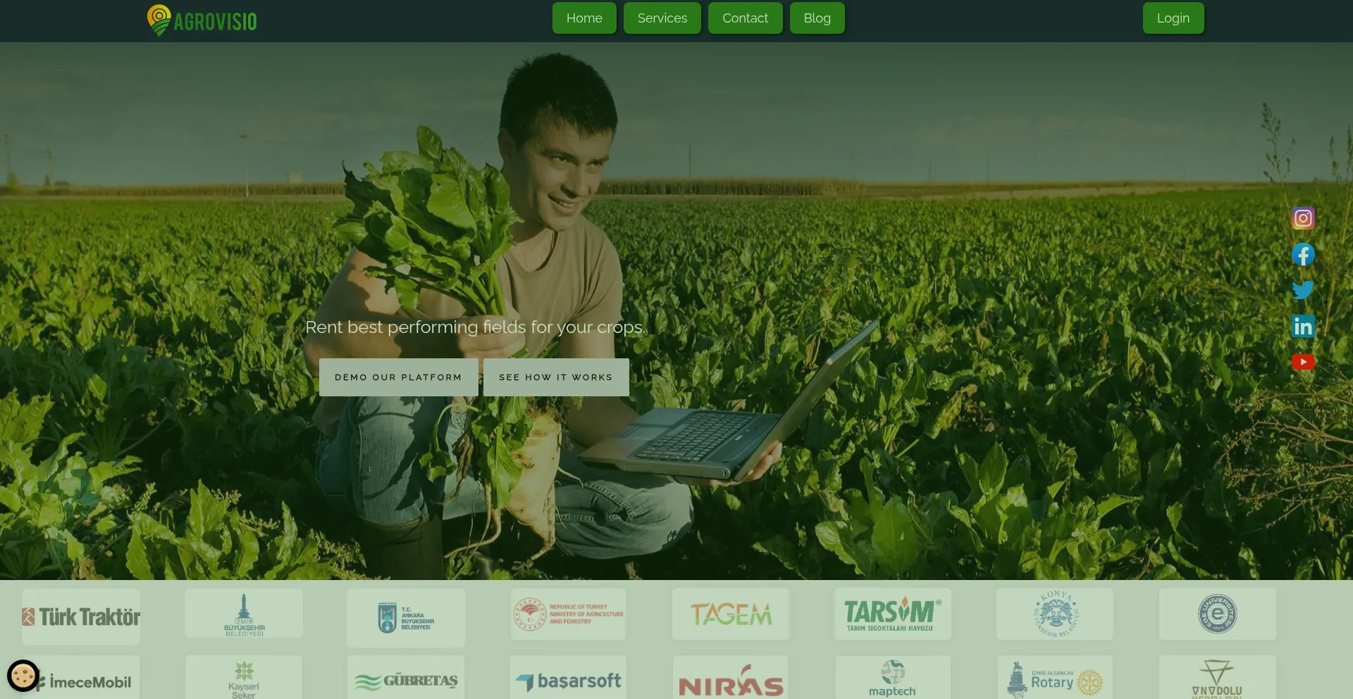 网站上存在社交媒体链接表明 agrovis.io 在社交媒体上维护官方账户,这是可信度和参与度的积极信号。