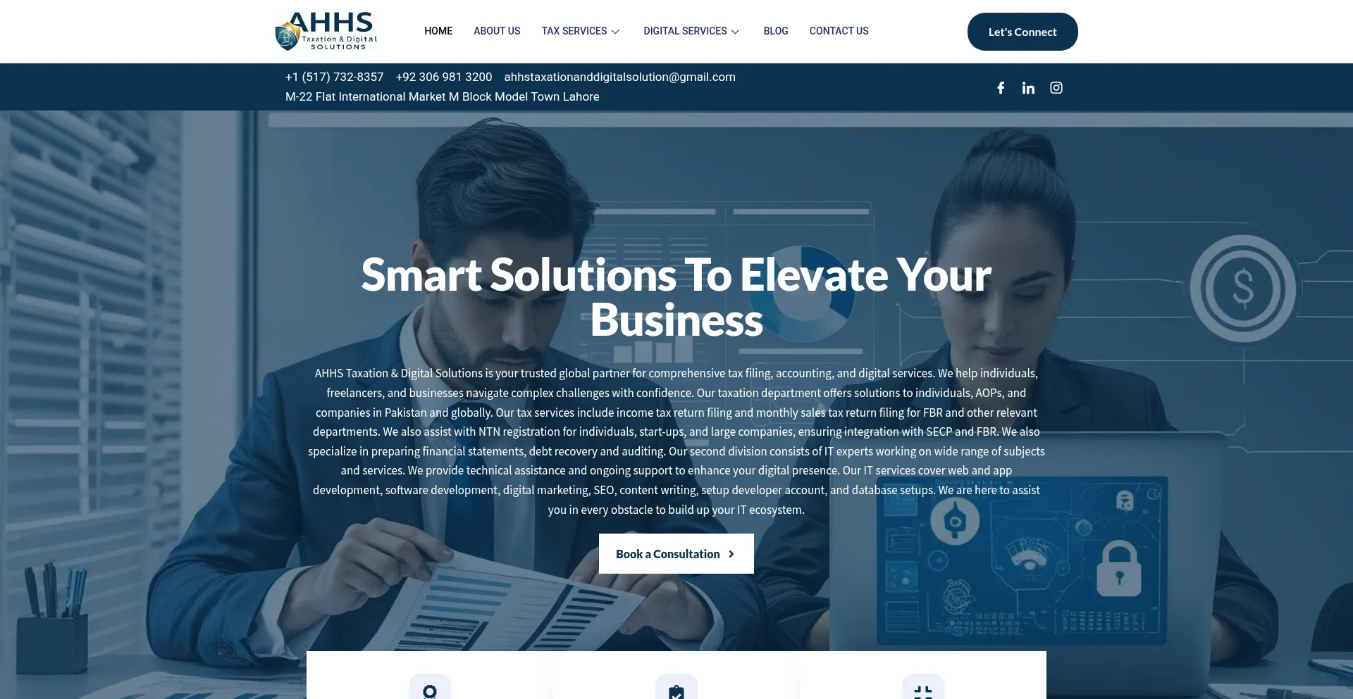 网站上存在社交媒体链接表明 ahhstaxationdigitalsolutions.com 在社交媒体上维护官方账户,这是可信度和参与度的积极信号。