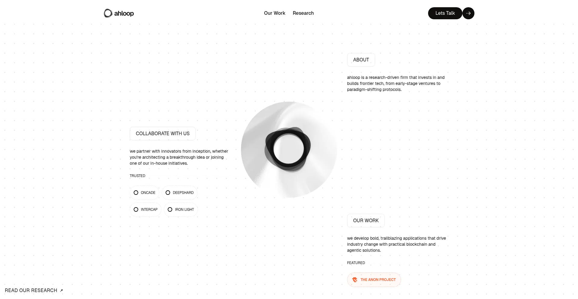 ahloop is a research-driven firm that invests in and builds frontier tech, from early-stage ventures to paradigm-shifting protocols.