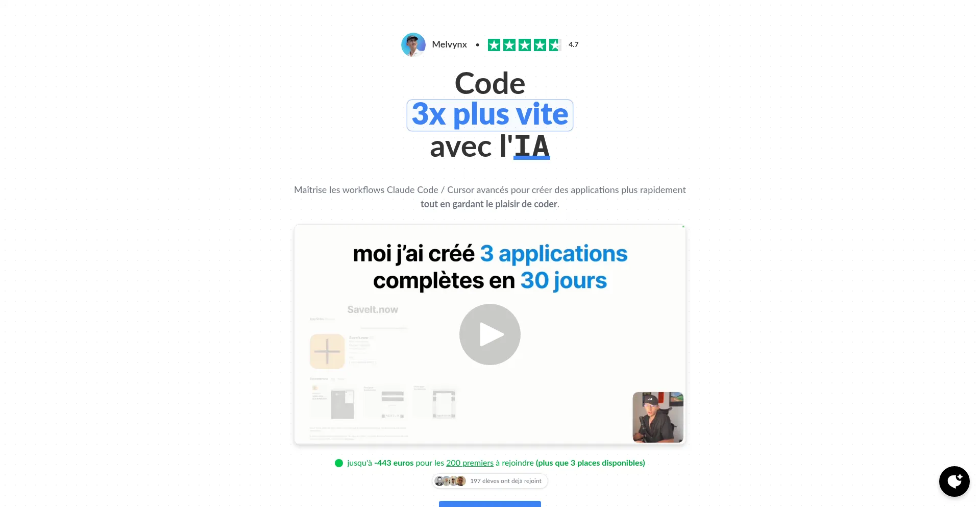 Maîtrise l'IA pour créer des SaaS 3x plus vite. 7 jours de formation, workflow d'agents, création SaaS en 2 jours. +2000 développeurs formés.