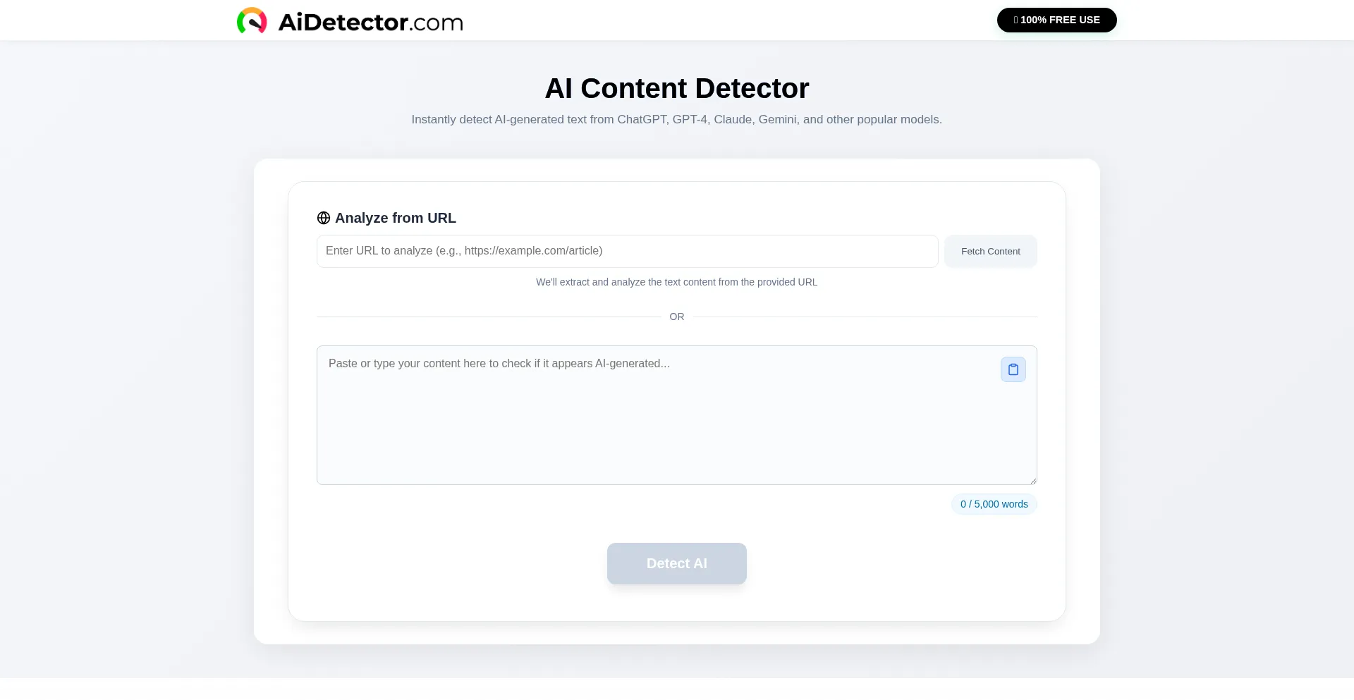 AI Detector - 100% FREE AI Checker (up to 5k words)