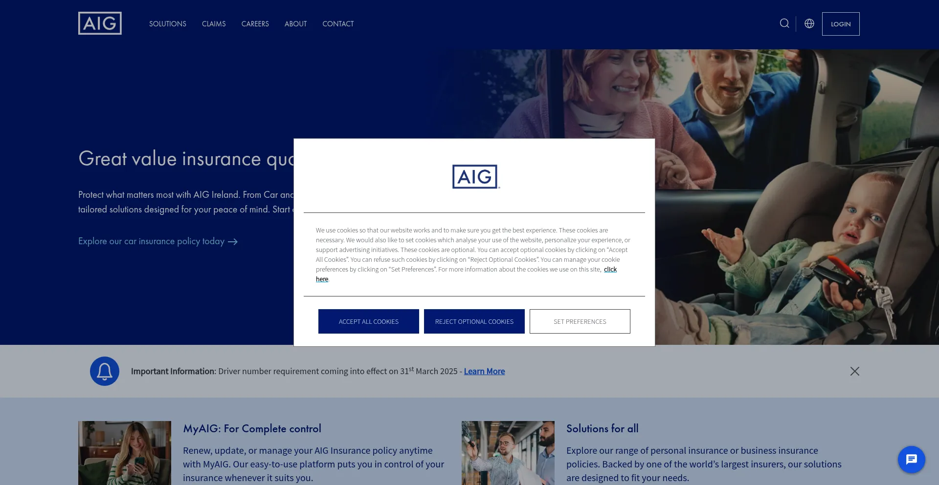 该网站实现符合GDPR或CCPA等隐私法规的cookie同意机制。这表明 aig.ie 遵守数据保护标准并为用户提供对个人数据收集实践的控制。