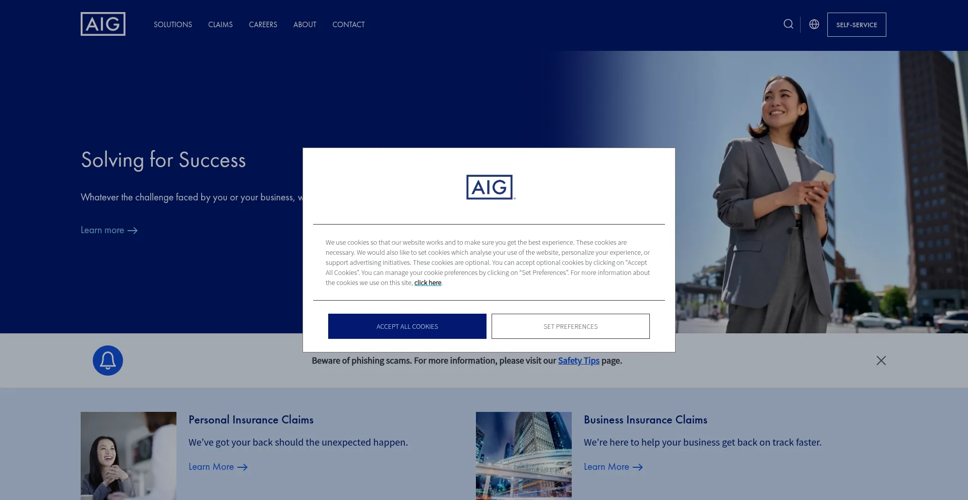 该网站实现符合GDPR或CCPA等隐私法规的cookie同意机制。这表明 aig.sg 遵守数据保护标准并为用户提供对个人数据收集实践的控制。