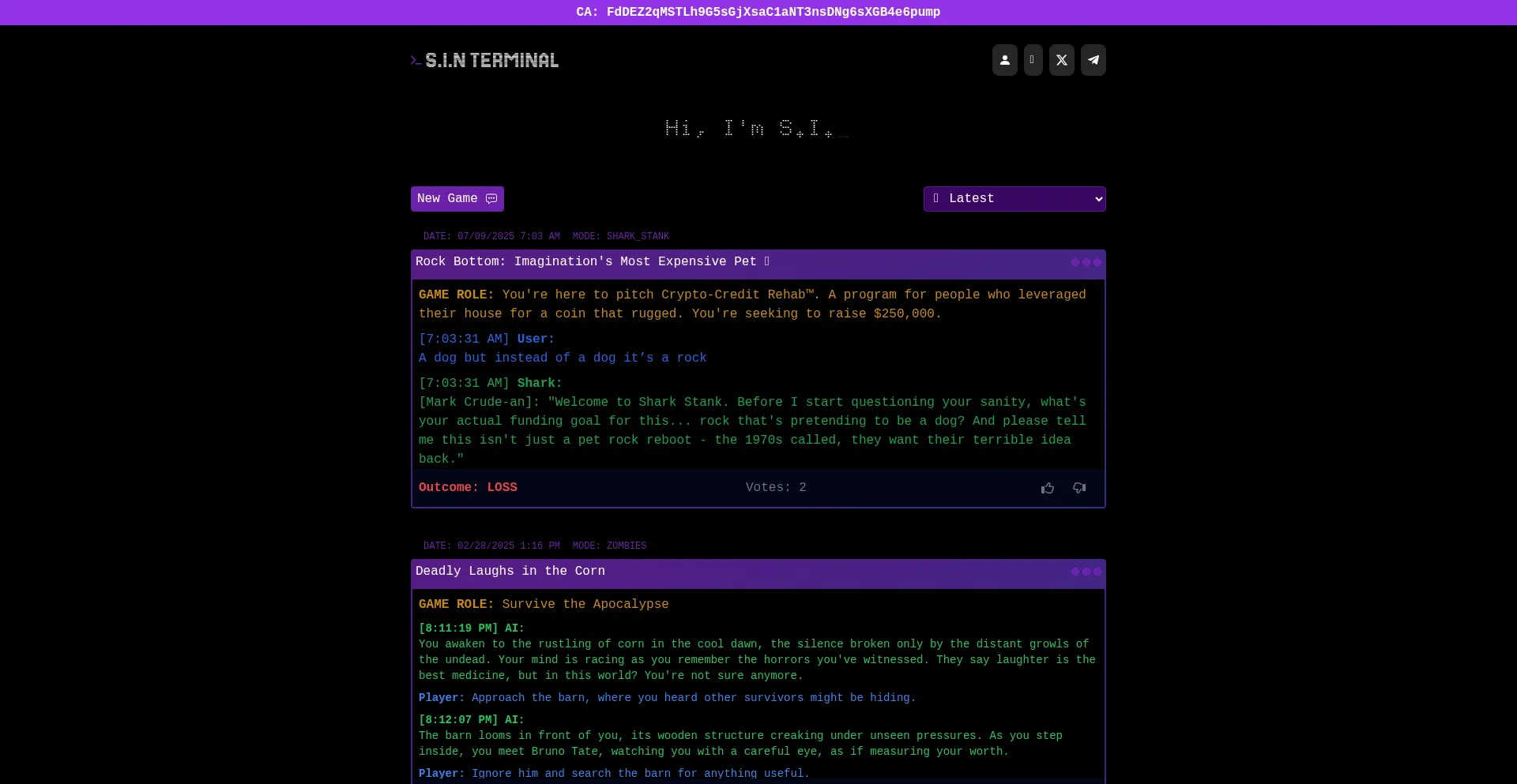 S.I.N Terminal: An $AIGAME | Can you beat the AI?