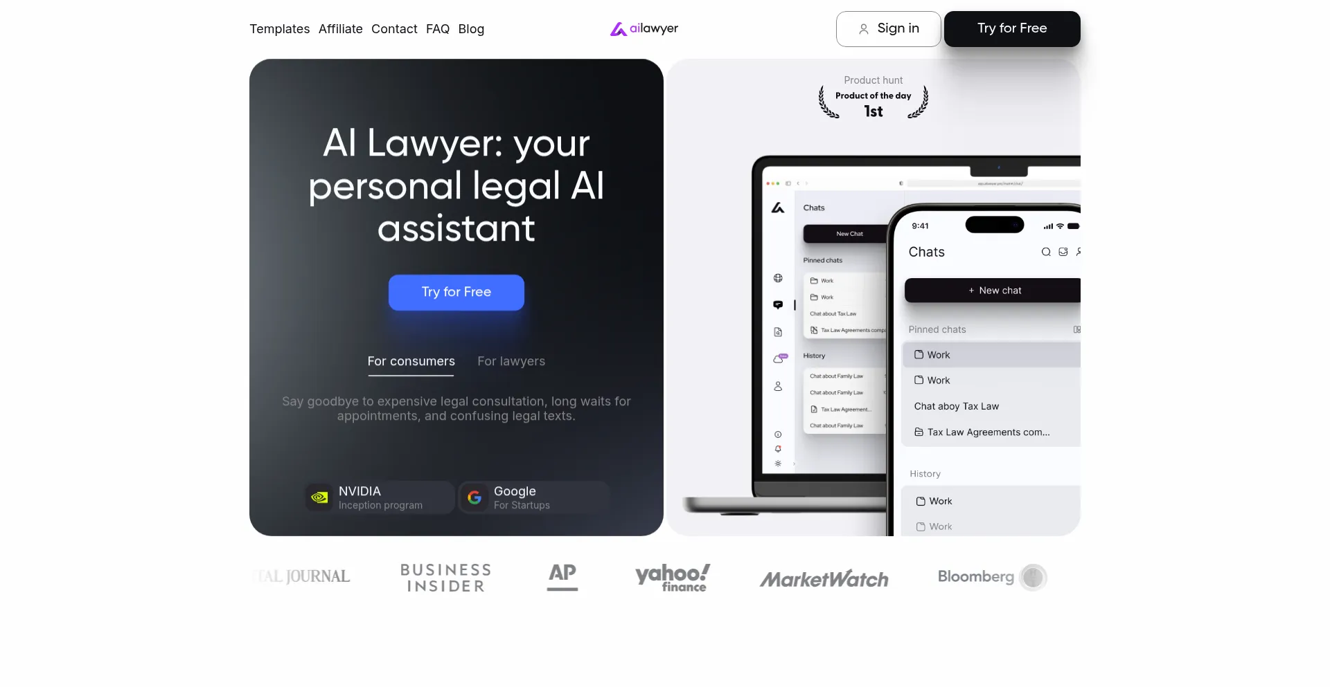 ailawyer.pro 提供 Android 设备移动应用程序,表明平台存在已扩展到网络服务之外。