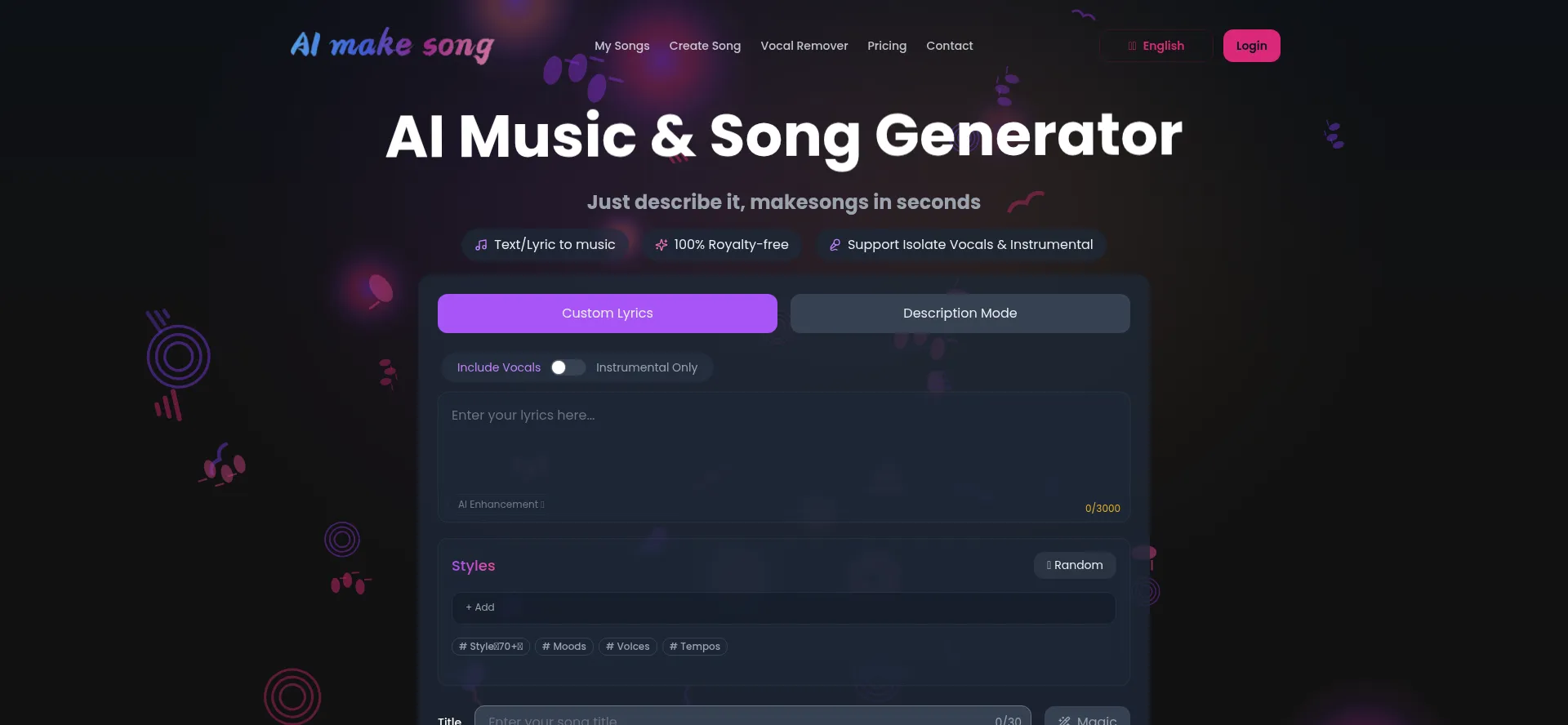 Use AiMakeSong to turn text into music instantly. Create AI-generated songs in any genre. Fast, free, and royalty-free music creation online.