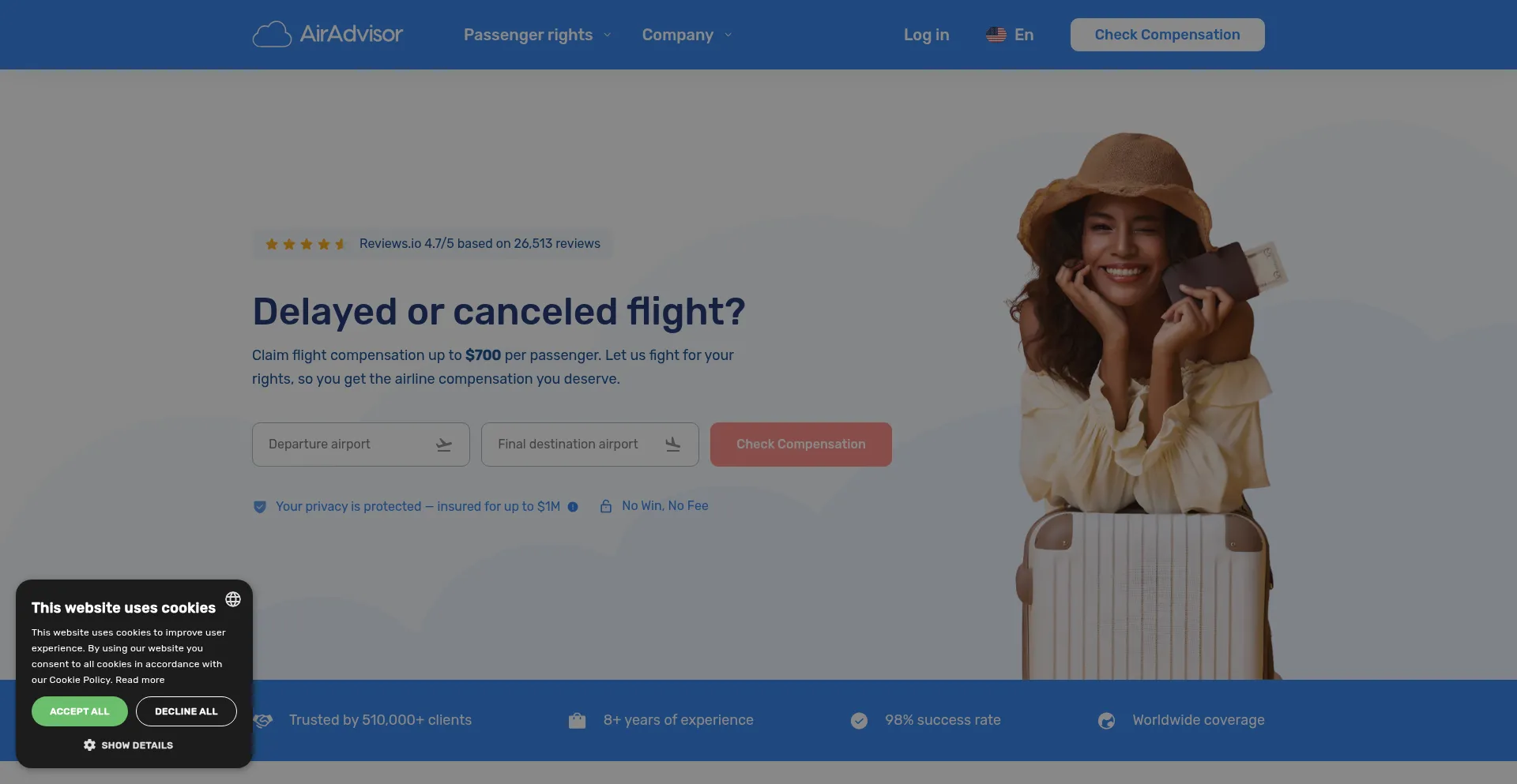 Claim flight compensation from airlines up to $650! ✅ Trusted by 510,000+ air passengers ✅ Rated 4.6 / 5 based on 26,278+ reviews ✅ Free Flight Checker.
