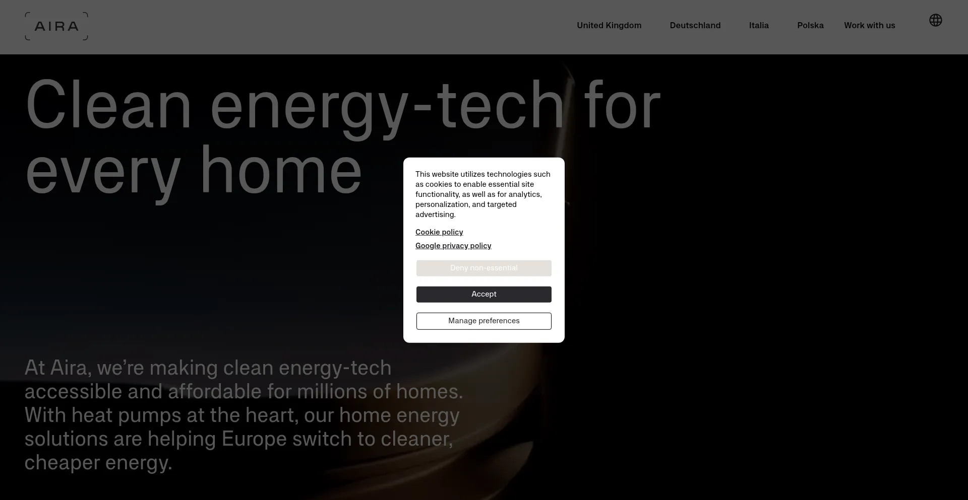 该网站实现符合GDPR或CCPA等隐私法规的cookie同意机制。这表明 airahome.com 遵守数据保护标准并为用户提供对个人数据收集实践的控制。