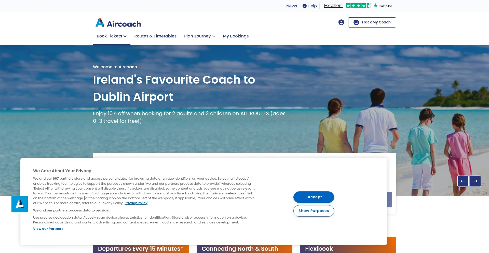 该网站实现符合GDPR或CCPA等隐私法规的cookie同意机制。这表明 aircoach.ie 遵守数据保护标准并为用户提供对个人数据收集实践的控制。