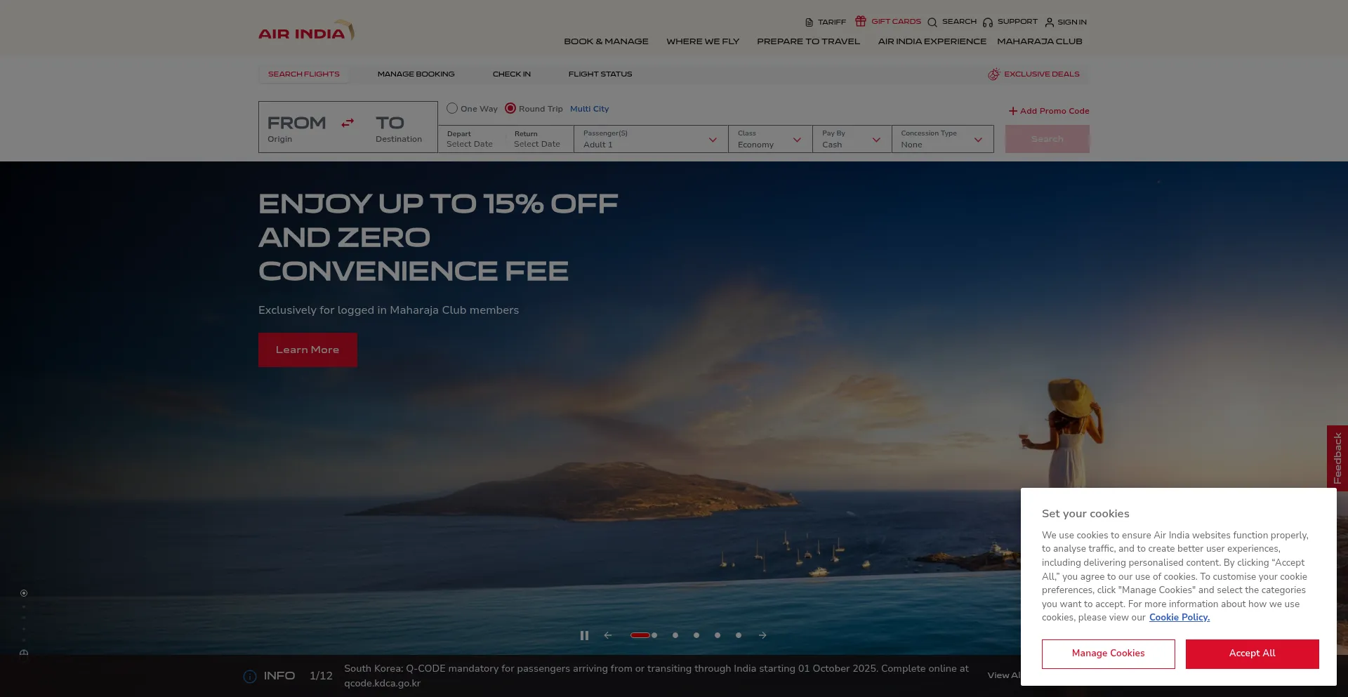 该网站实现符合GDPR或CCPA等隐私法规的cookie同意机制。这表明 airindia.in 遵守数据保护标准并为用户提供对个人数据收集实践的控制。