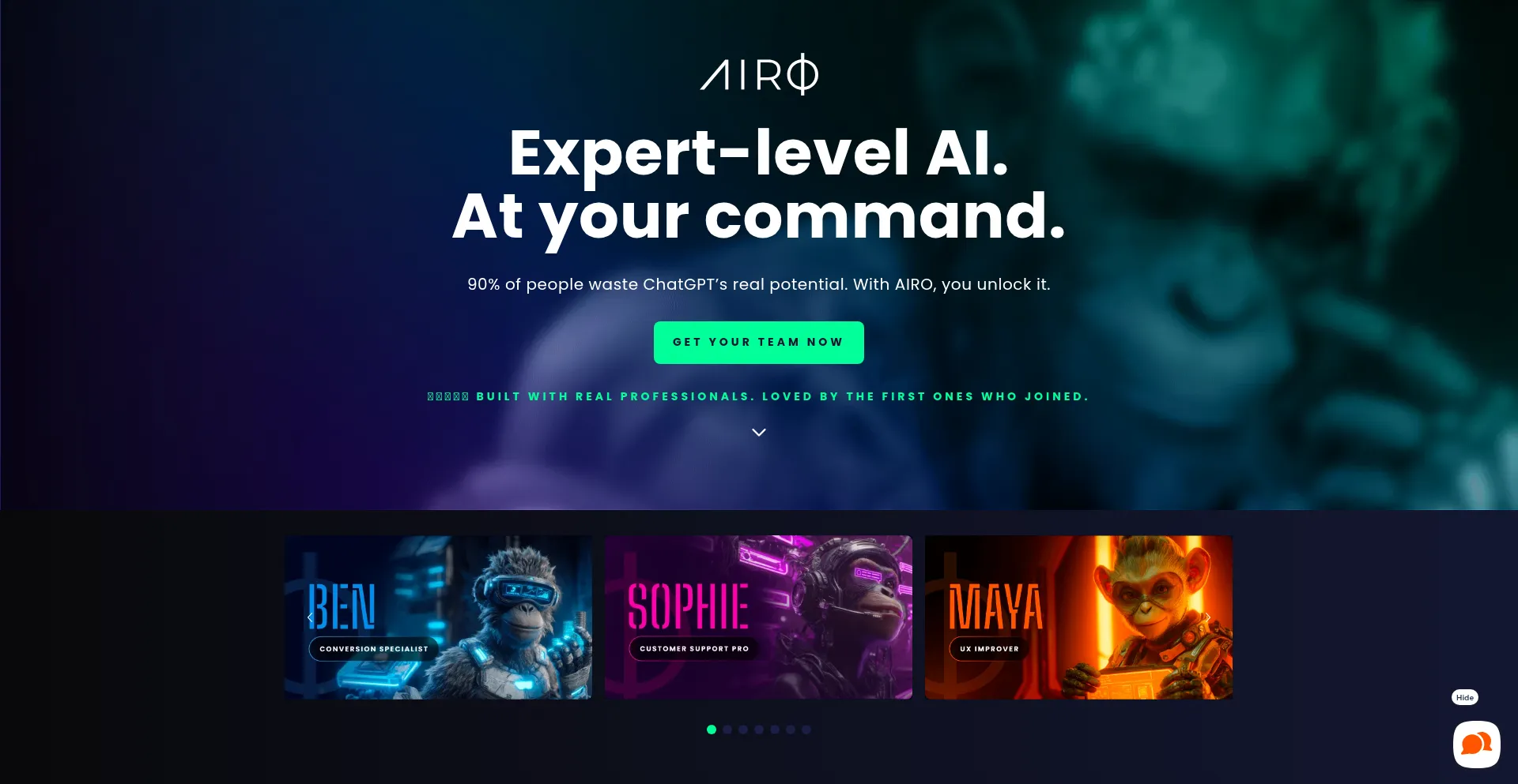 Boost your productivity with AIRO Φ: a curated set of powerful GPT-based assistants designed for solopreneurs, creators, marketer and lean teams. Choose your team, unlock their...