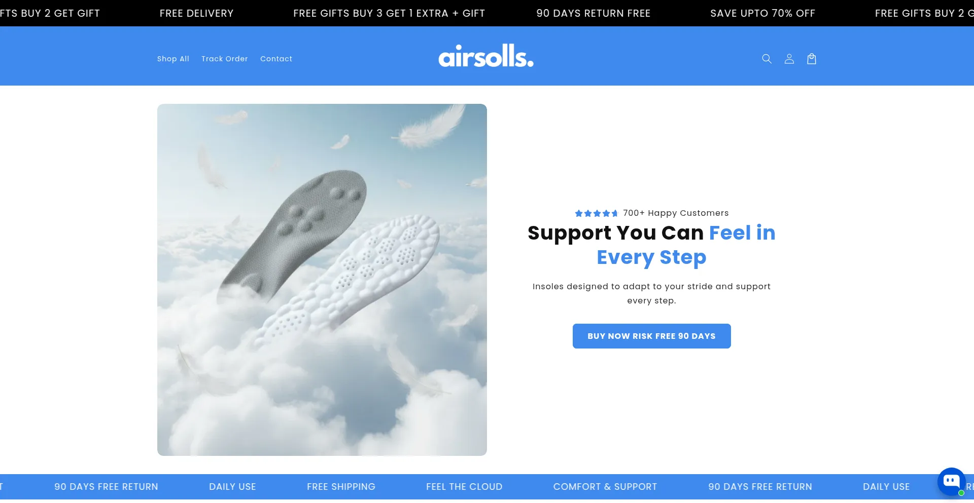 Discover AirSolls insoles with AirCloud™ technology. Trim to fit, designed for all-day comfort, and backed by a 90-day satisfaction guarantee.