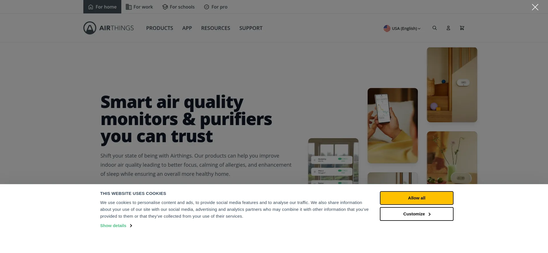 该网站实现符合GDPR或CCPA等隐私法规的cookie同意机制。这表明 airthings.com 遵守数据保护标准并为用户提供对个人数据收集实践的控制。