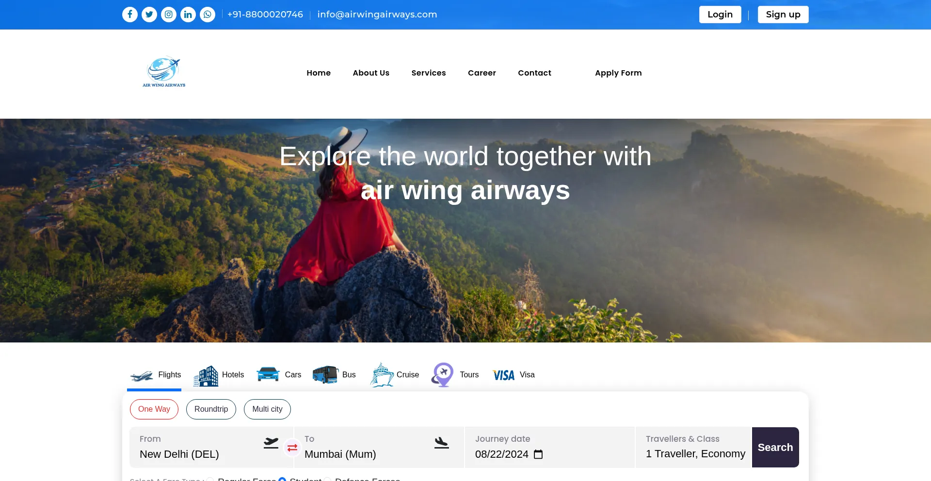 该网站实现数据收集表单,请求个人信息,包括姓名、电子邮件地址、电话号码或其他敏感详细信息。用户应验证 airwingairways.com 的合法性并在提交个人数据前查看隐私政策。