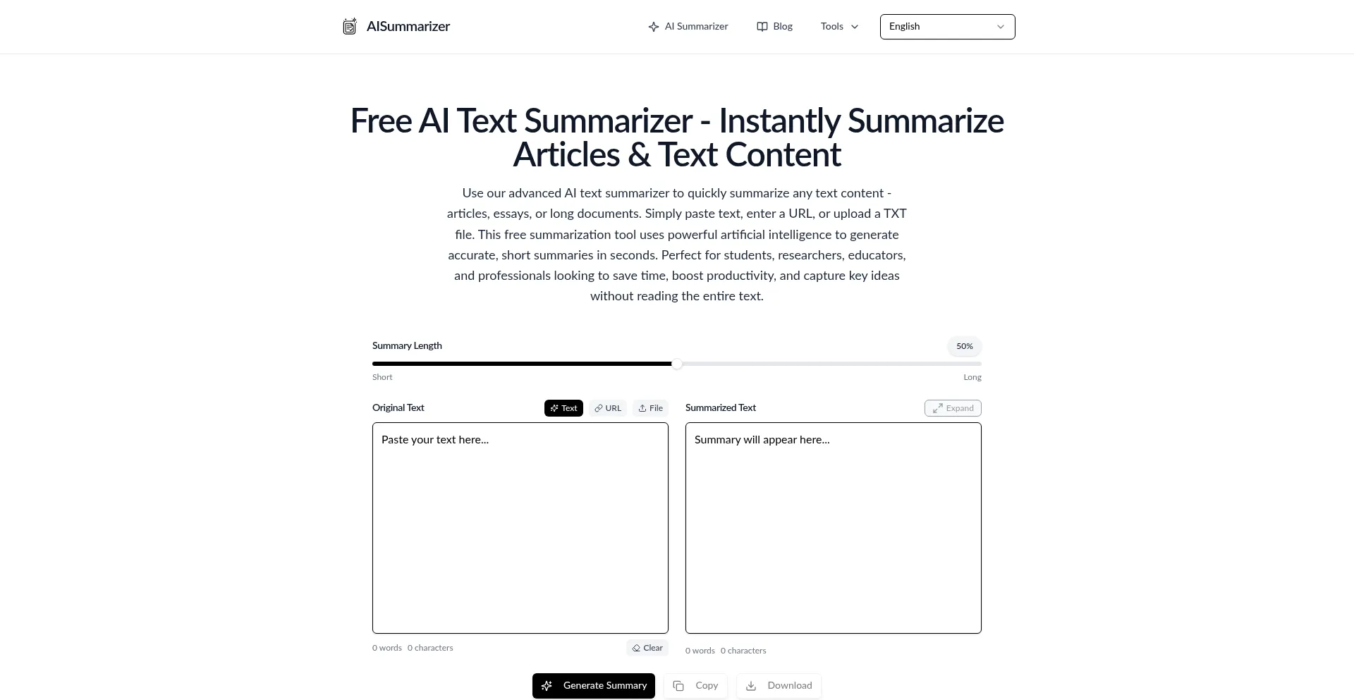 Transform long articles, documents, and text into concise summaries using advanced AI technology.