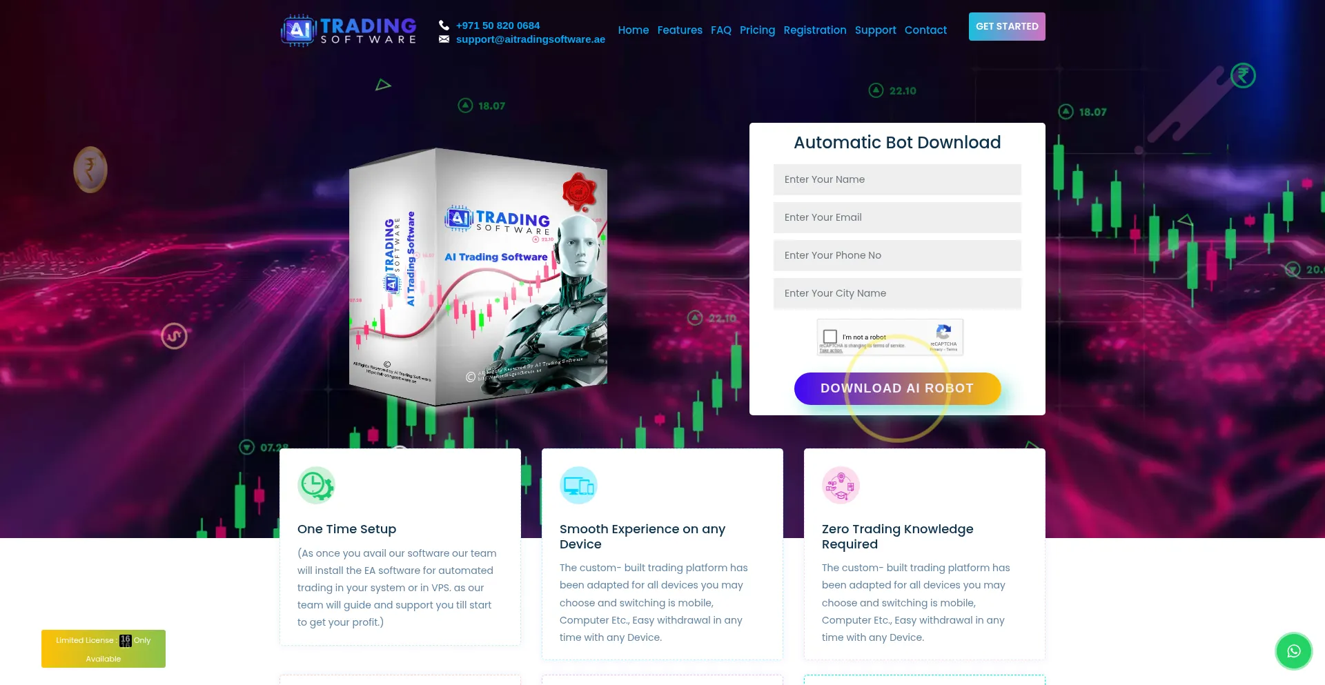 该网站实现数据收集表单,请求个人信息,包括姓名、电子邮件地址、电话号码或其他敏感详细信息。用户应验证 aitradingsoftware.ae 的合法性并在提交个人数据前查看隐私政策。