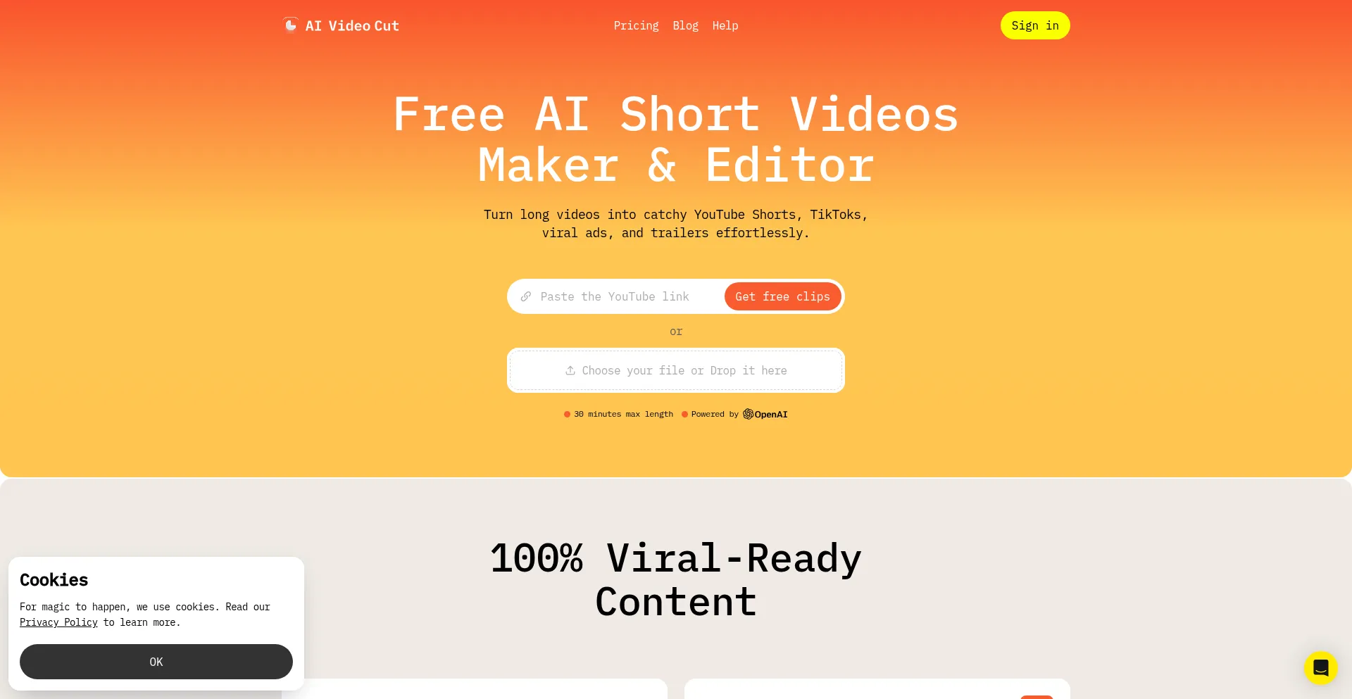 Transform lengthy videos into viral YouTube Shorts, TikToks, or ads effortlessly using AI Video Cut. Repurpose with ease and captivate your audience!
