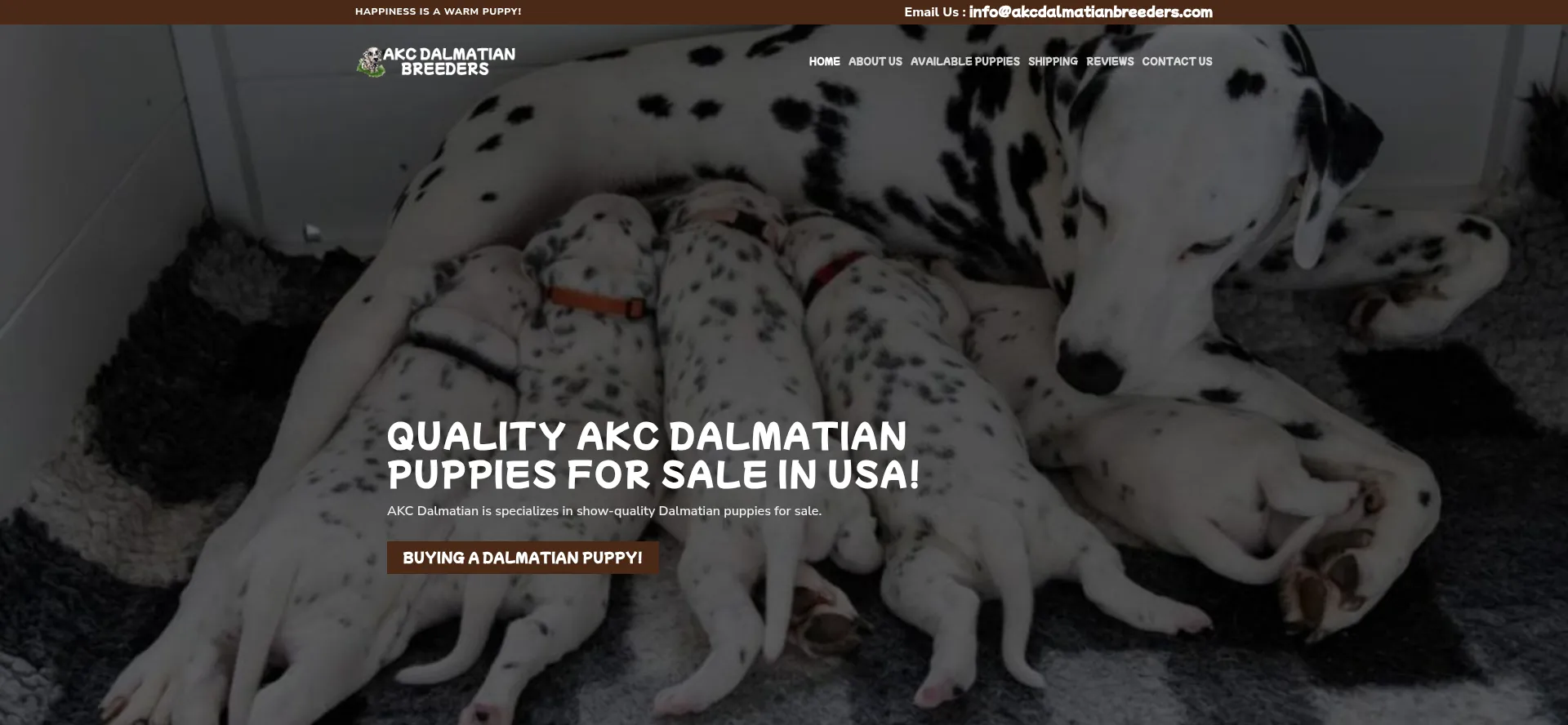 帮助保护他人,快在社交媒体上分享此页面吧!知道akcdalmatianbreeders.com的人越多,骗子就越难得逞。 通过在社交媒体上分享此页面,帮助更多人发现可靠的akcdalmatianbreeders.com吧!