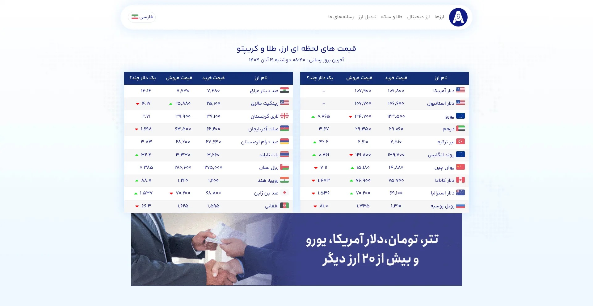 مشاهده لحظهای قیمت ارز، طلا، سکه و رمزارزها از منابع معتبر در الان چند. مرجع دقیق و بیطرف قیمت�...