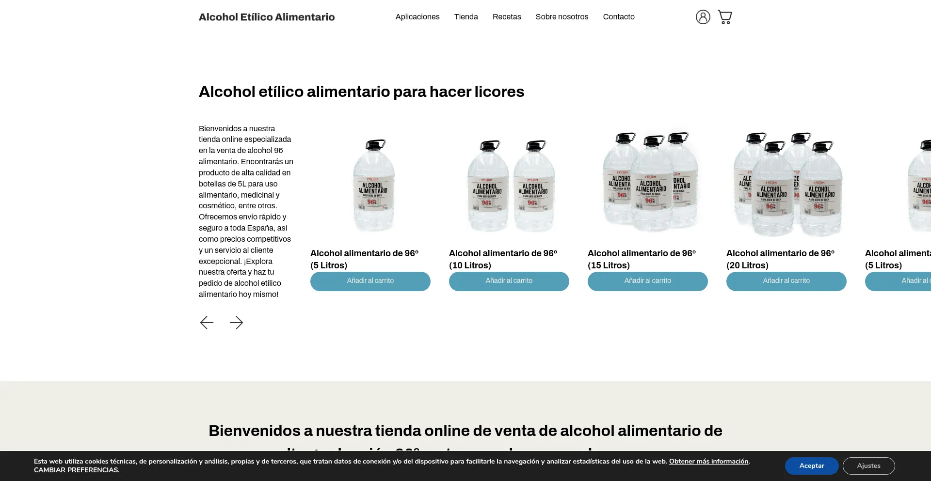 Tienda online de venta de alcohol alimentario de alta graduación 96º, apto para el consumo humano. Ideas y recetas para su uso.