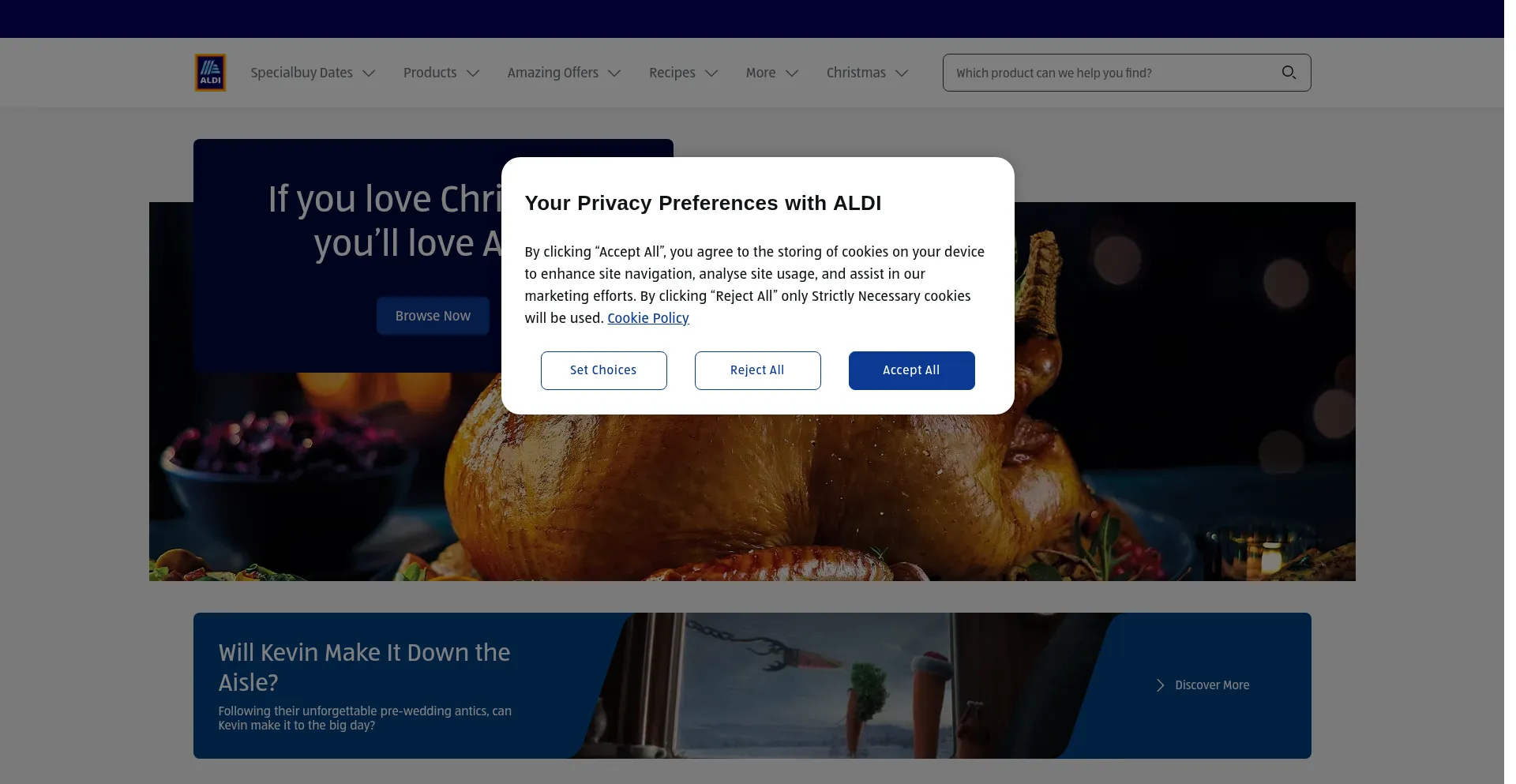 该网站实现符合GDPR或CCPA等隐私法规的cookie同意机制。这表明 aldi.ie 遵守数据保护标准并为用户提供对个人数据收集实践的控制。