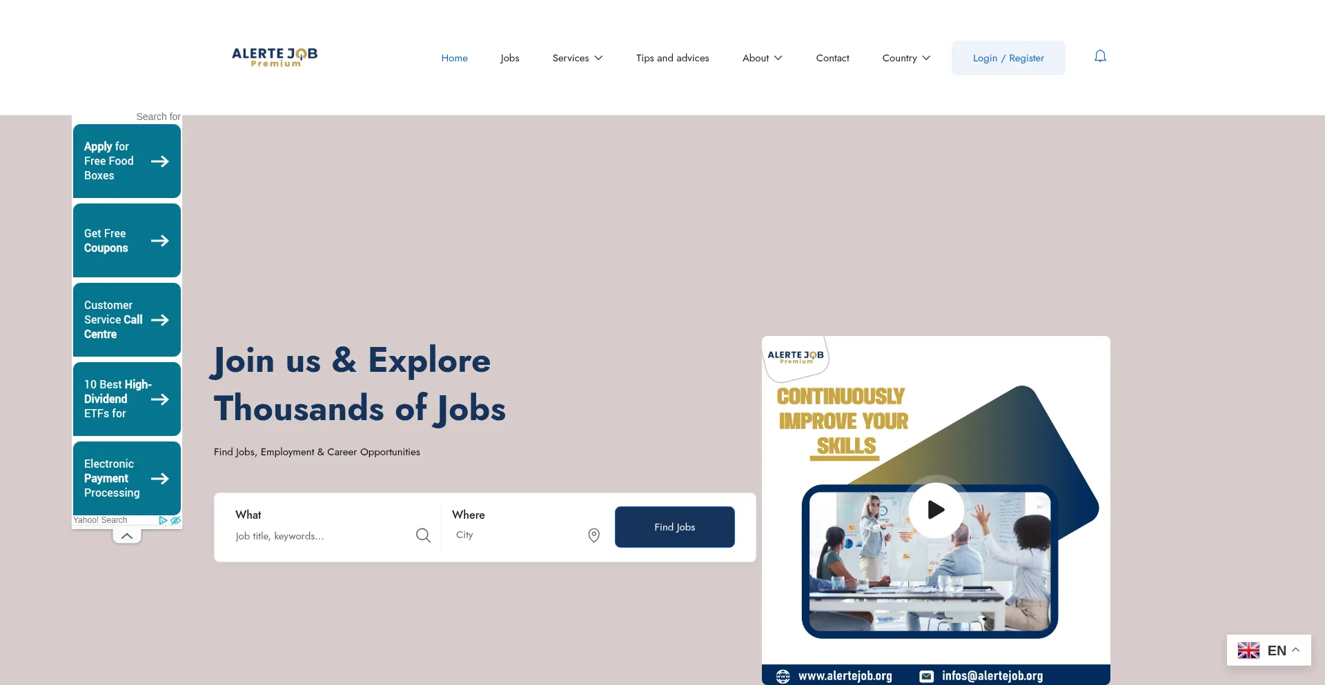 Alerte Job Premium – Plateforme internationale de diffusion d'offres d'emplois.